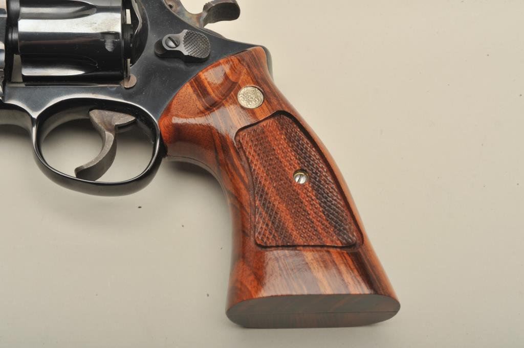 barrel, blued finish, target hammer and trigger, checkered wood medallion combat grips, S/N N406510, in like new condition with factory wood presentation case. (Modern/PPT). Est.: $700-$1,400.