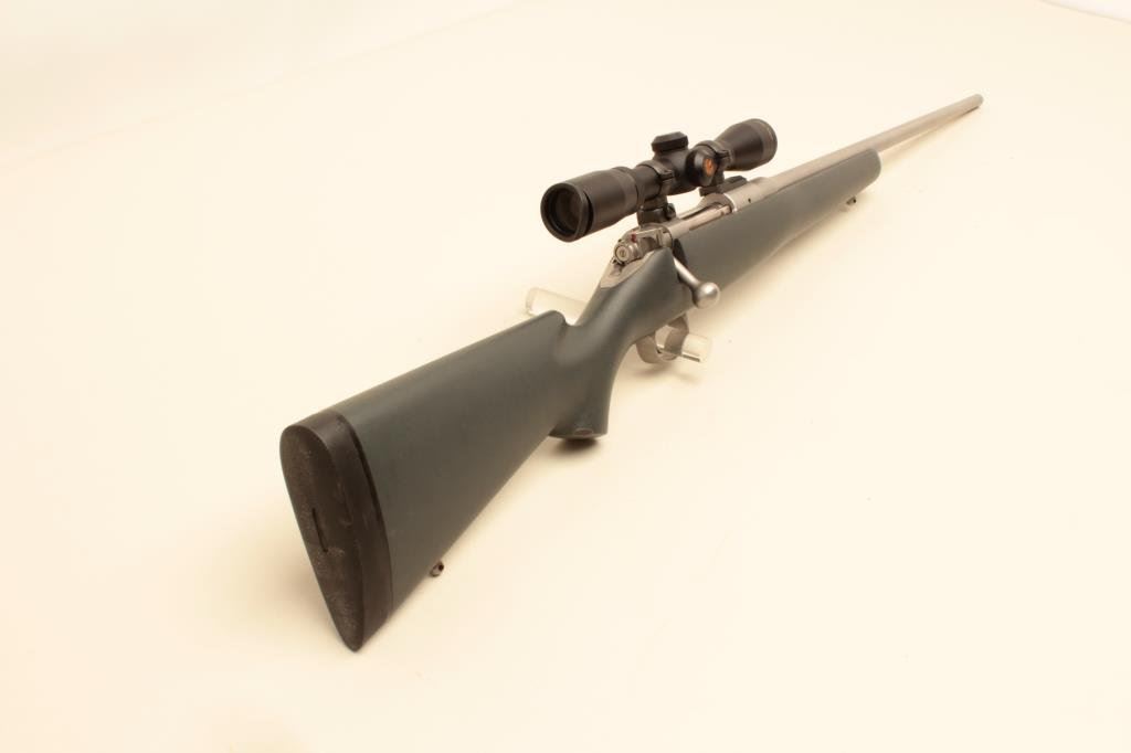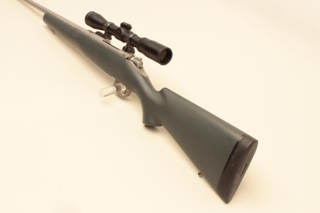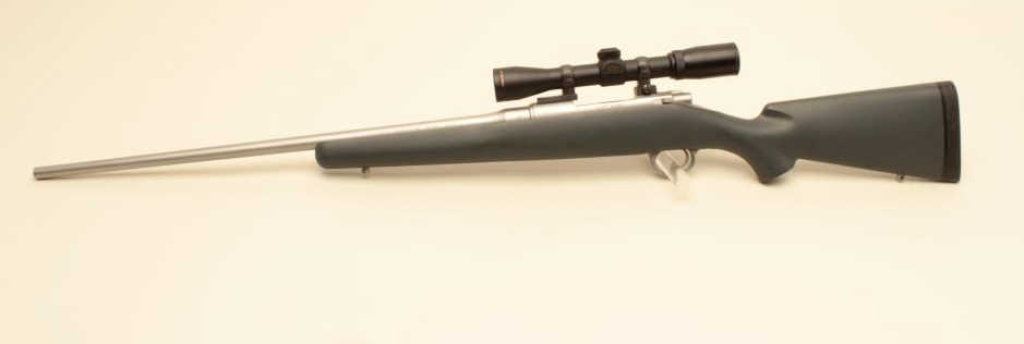 Serial #KW15890. The rifle is in very good overall condition with a 24” barrel. The barrel and receiver both retain nearly all of their matte stainless finish with light handling marks noted. The lightweight Kevlar stock is in very good condition with a small mar at the pistol grip and wear from carry and use. The butt stock ends with a Kimber marked rubber decelerator pad. The rifle is topped with a two-piece scope mount and a Nikon Pro-Staff fixed 4x scope with clear, crisp optics. The bore is very good, the action is crisp and the markings are sharp. Weighing in at just over 6 pounds with the scope, the Montana offers a light, handy rifle in the potent 0.325 Winchester Short Mag chambering. Est.: $600-$1,000. (Modern).