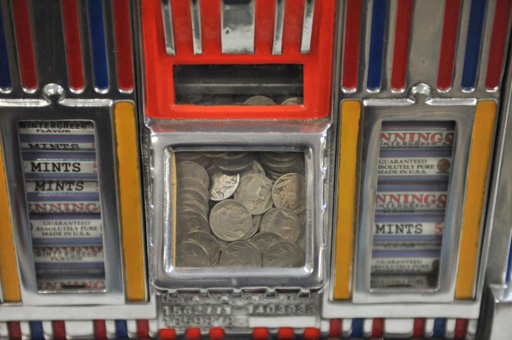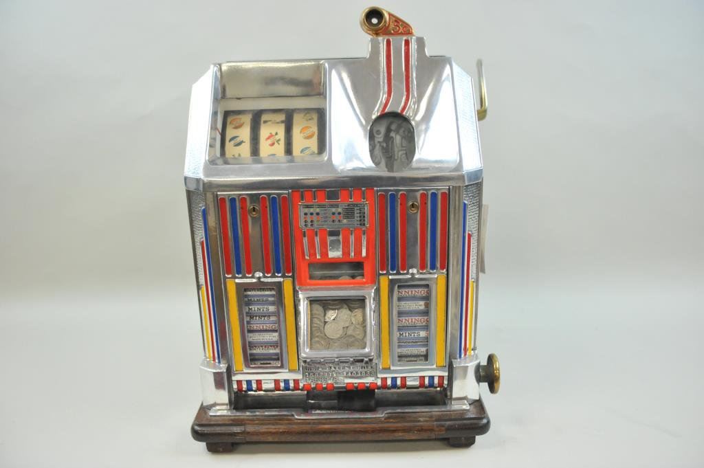 Lot 18b Jennings Dutchess 1934 fortune wheels .05 machine with candy dispenser.