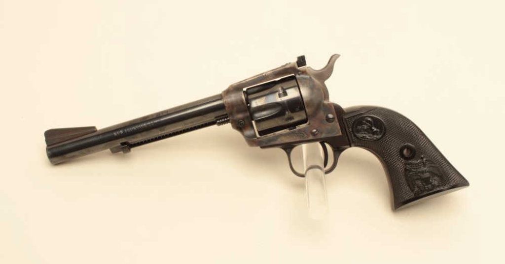 blued and case hardened finish, checkered hard rubber eagle grips, S/N G187849, in overall fine condition displaying the majority of its original finish, crisp action, very good to fine bore and fine grips; accompanied by an extra cylinder. (Modern/PPT). Est.: $500-$1,000.