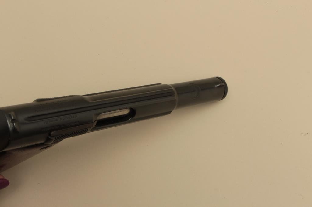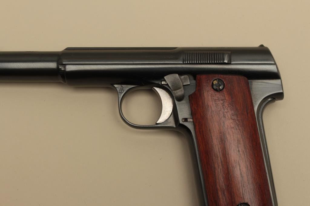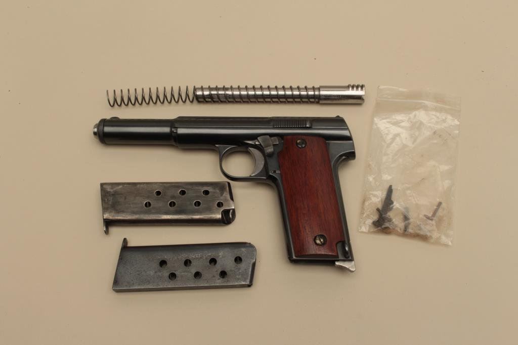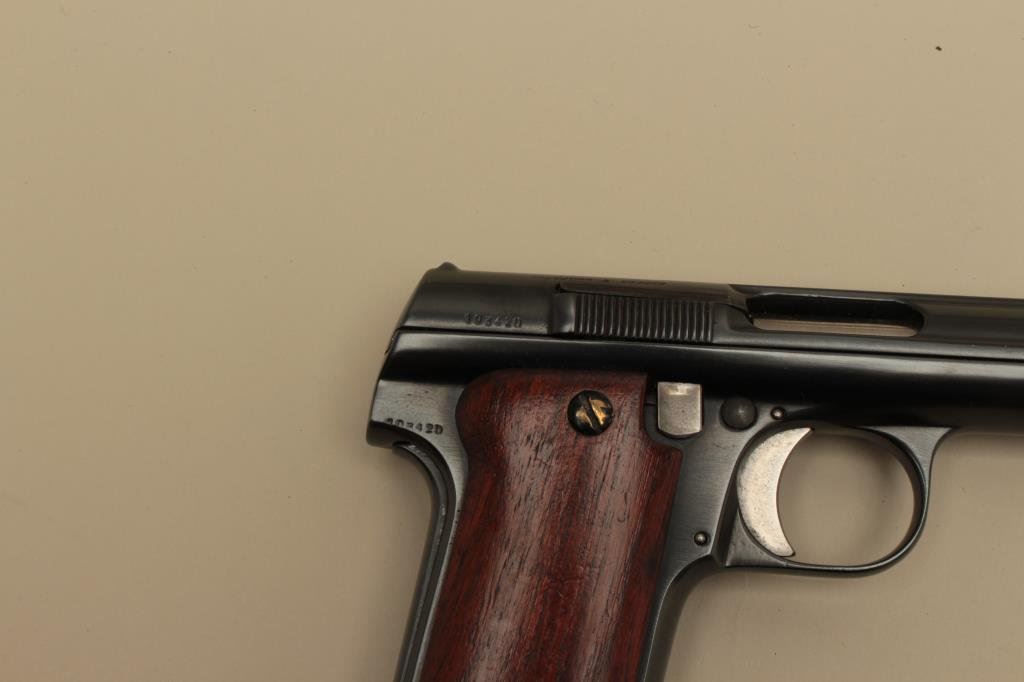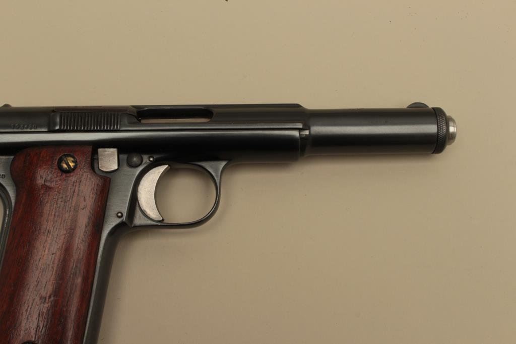 The pistol is in very good overall condition with a 6” barrel. The pistol retains nearly all of an, quality re-blue. All visible serial numbers are matching as is the Astra symbol on the barrel. The smooth wood stocks are in good condition showing small mars and compressions. The bore is good, the action is crisp and markings are sharp. The lot includes an extra barrel recoil spring and two magazines. Est.: $300-$600. (C+R).