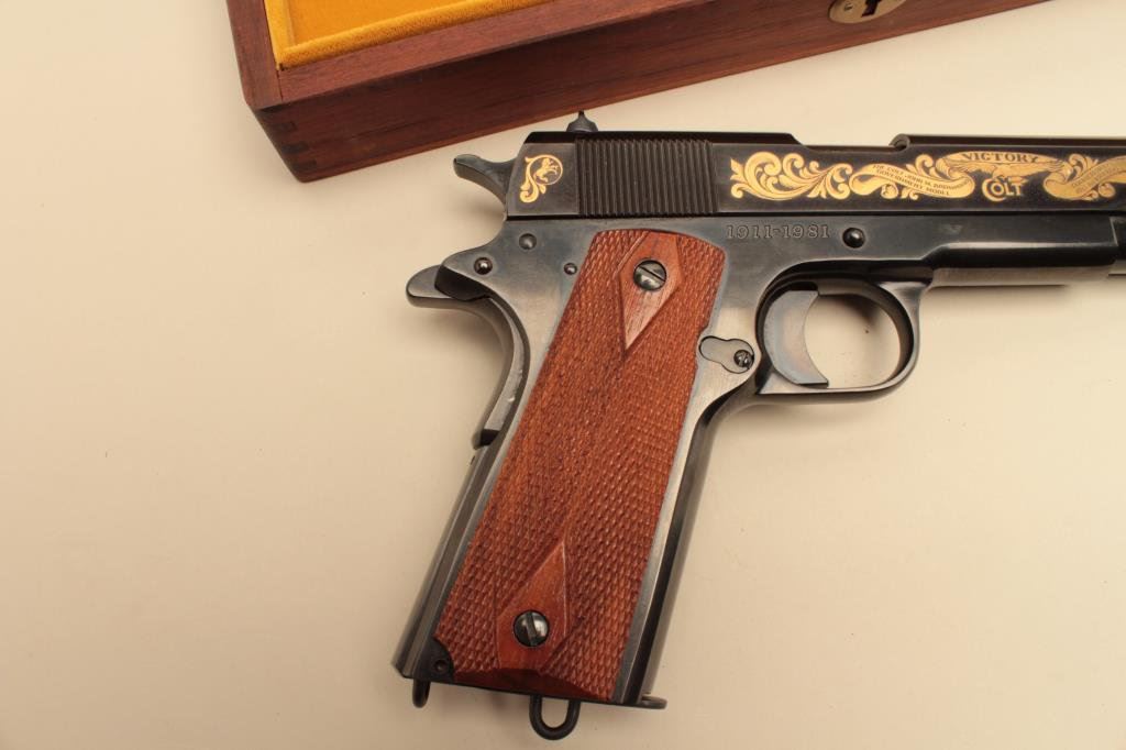 Lot 69 Cased Colt John Browning Commemorative 1911-1981 semi-auto pistol, .45 ACP,