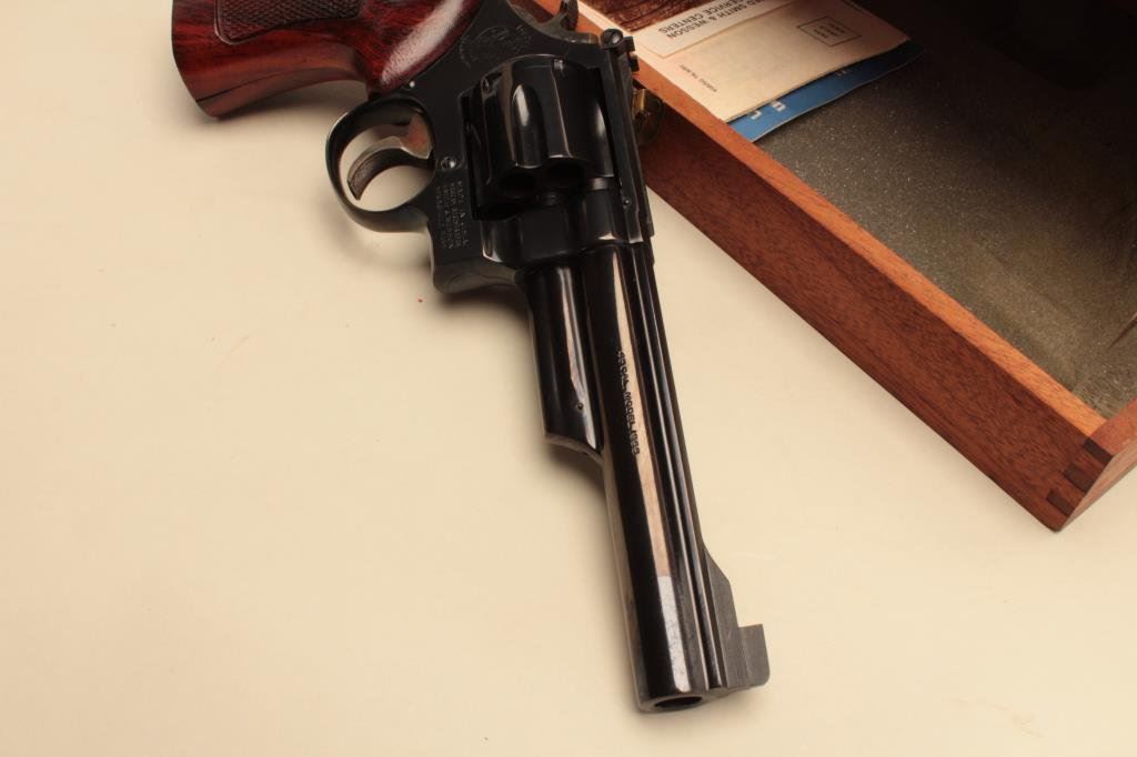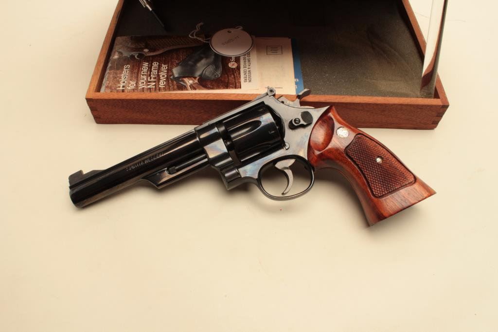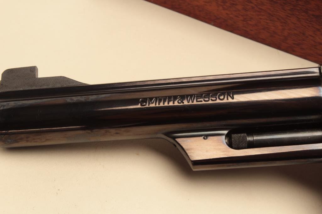 caliber, 6” barrel, blued finish, checkered combat wood medallion grips, S/N N805024, in overall excellent condition showing little handling; contained in a factory wood case with instructions and other misc. paperwork. (Modern/PPT). Est.: $900-$1,800.