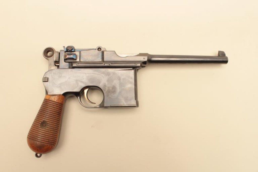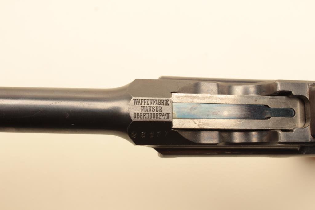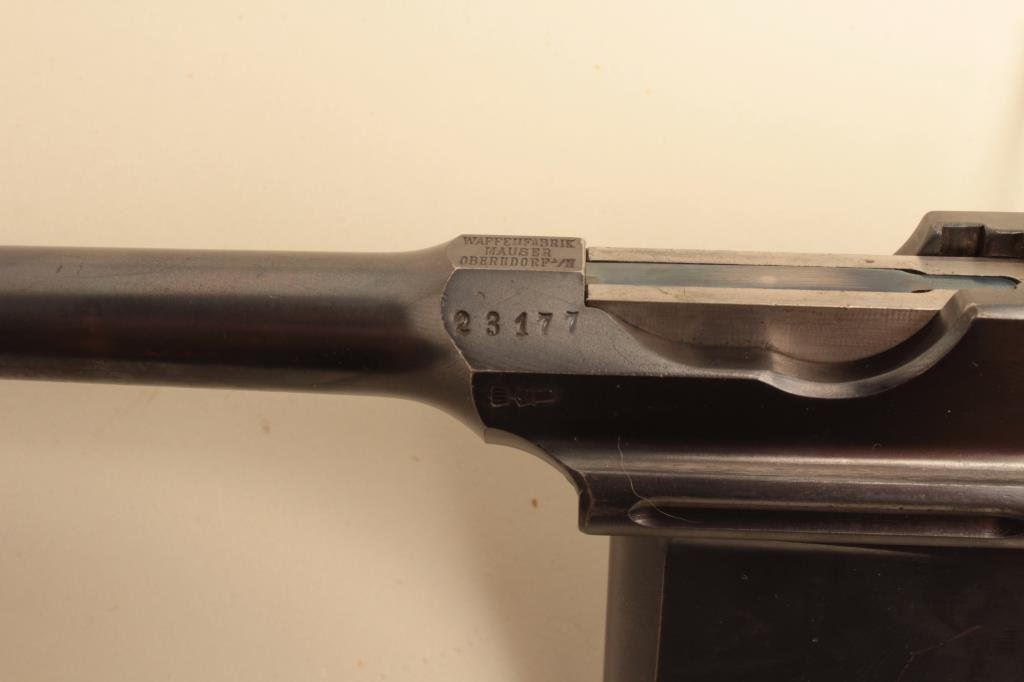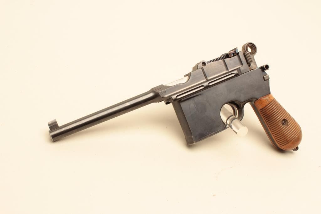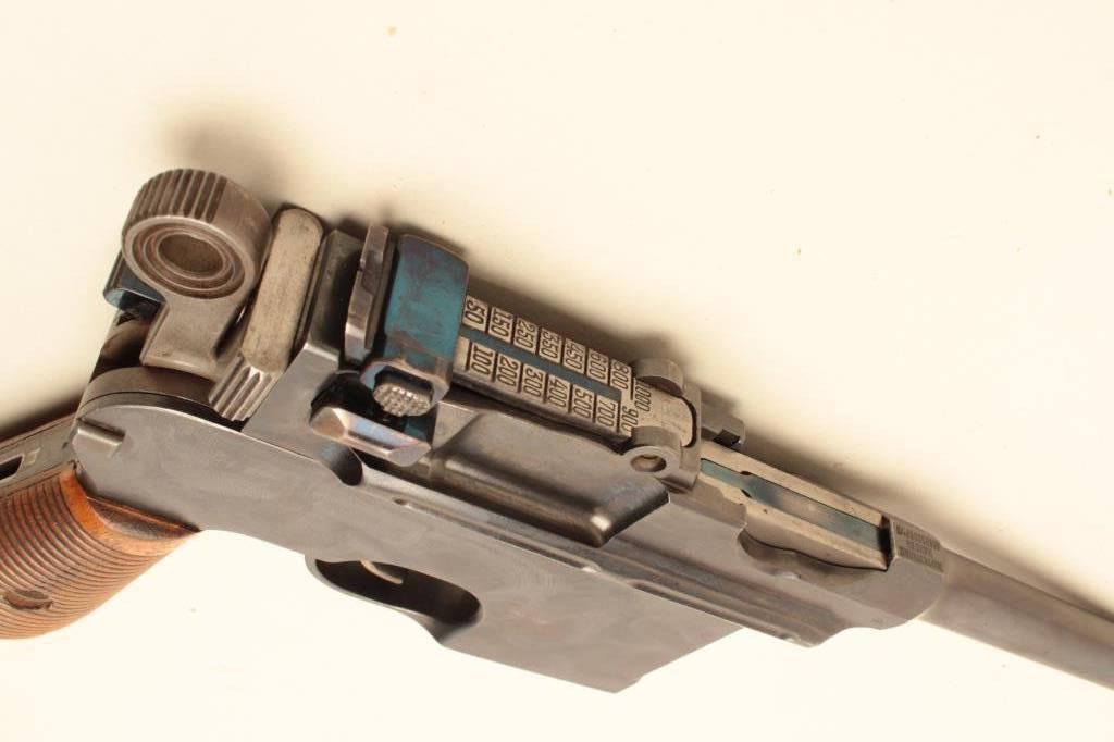 Lot 96 Mauser large ring flat side broomhandle semi-automatic pistol with wood