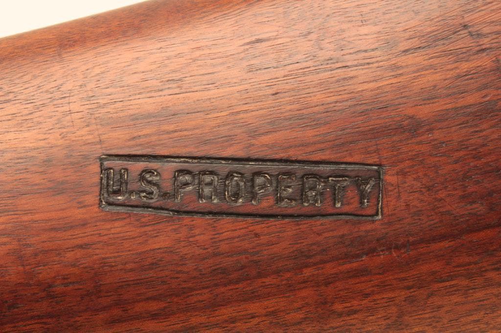 bomb proofed, 12 gauge, 26” barrel, blued finish, wood stocks with left side of butt stock stamped “U.S. Property”; S/N 85198, in overall very good condition with considerable military finish remaining on metal surfaces, very good + bore, crisp action, very good markings and very good wood stocks; small old chip to bottom of butt plate. (NOTE: Eric Archer, recognized expert, viewed this gun and stated it is the only original specimen known to him). (C&R/PPT). Est.: $800-$1,600.