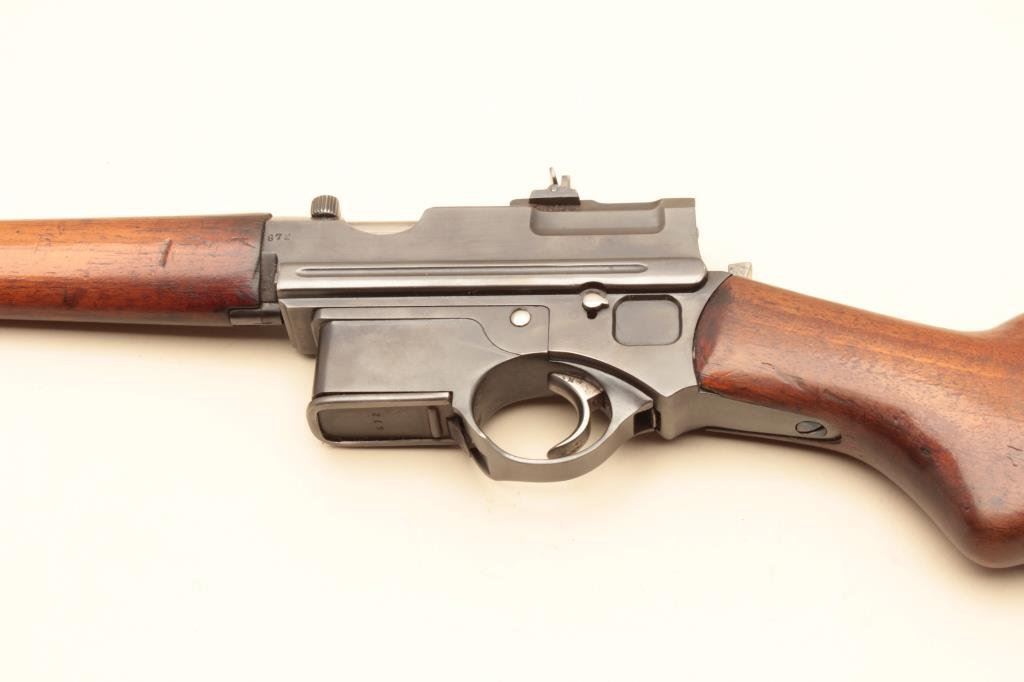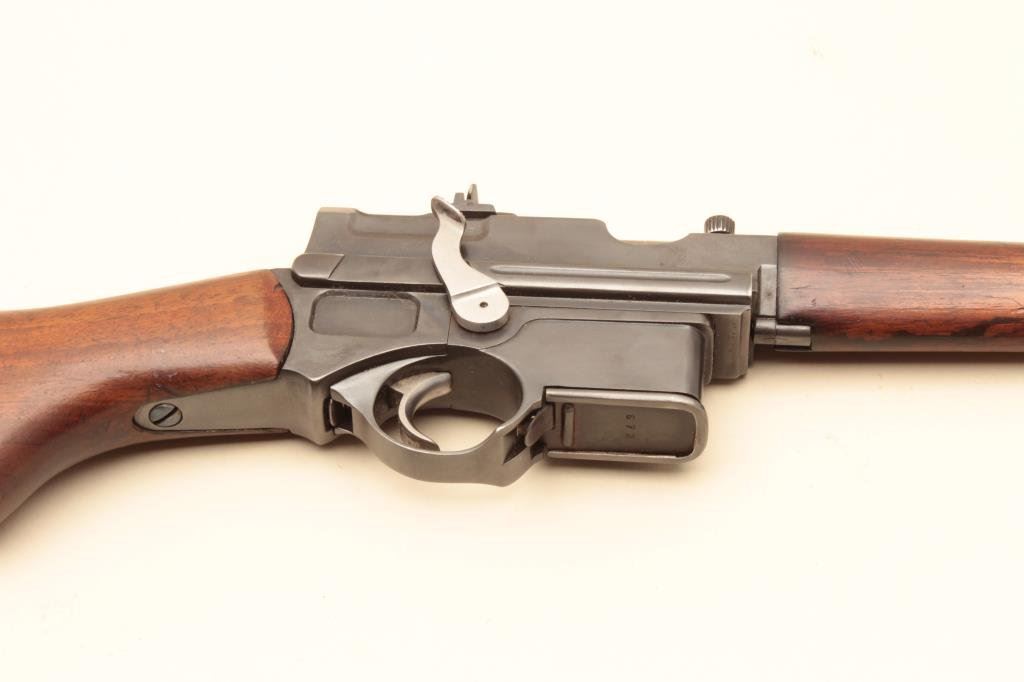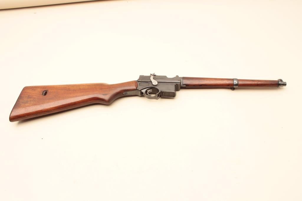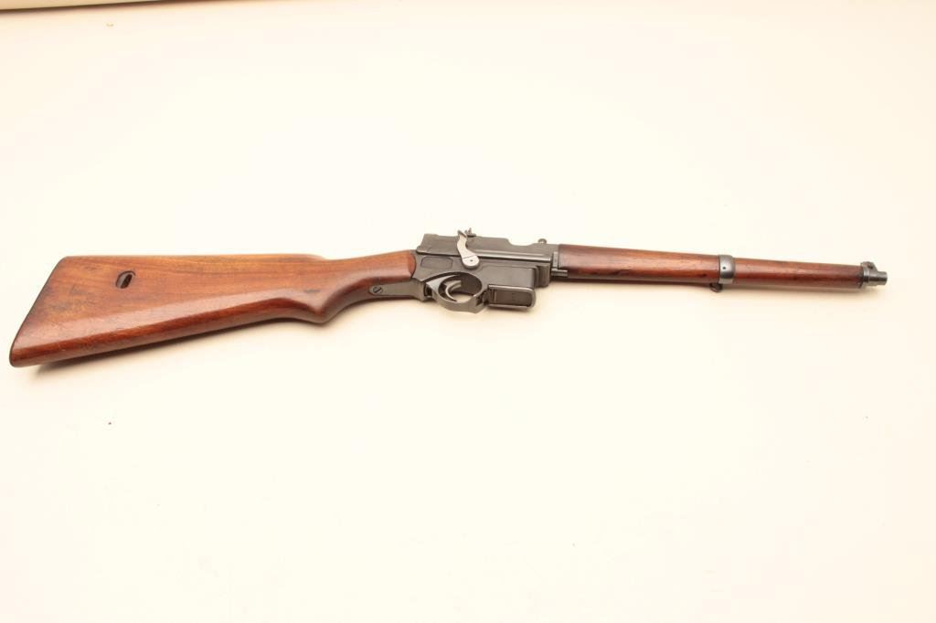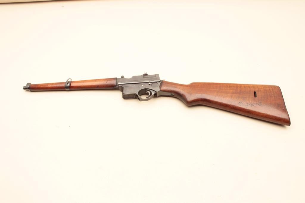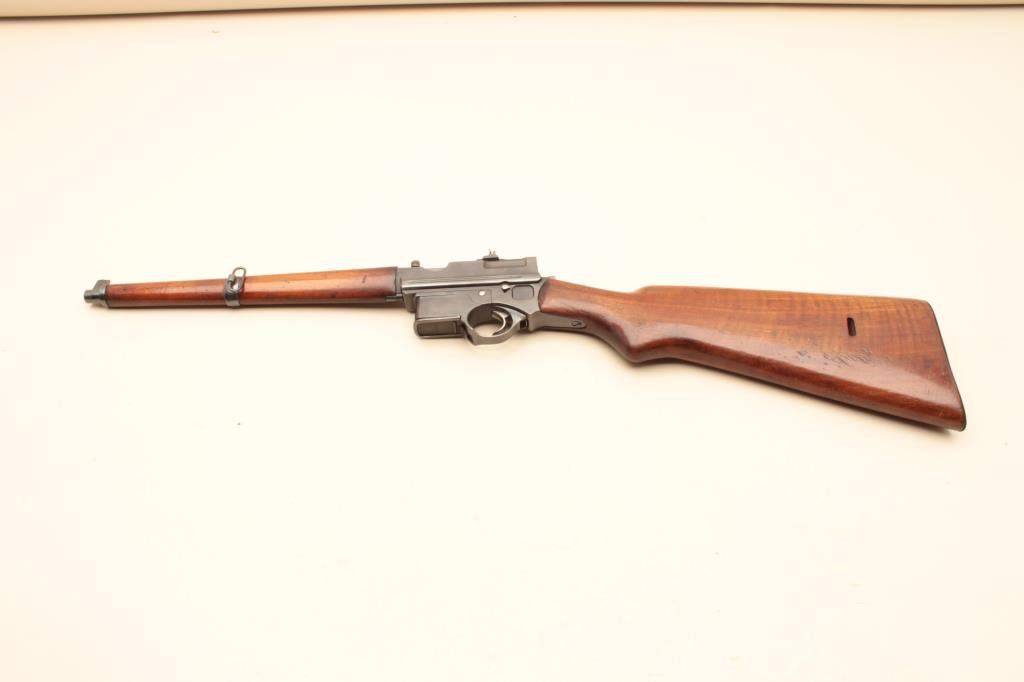 Lot 116 Mannlicher Bergmann carbine7.65mm caliber, blued finish, wood stocks, S/N 672,
