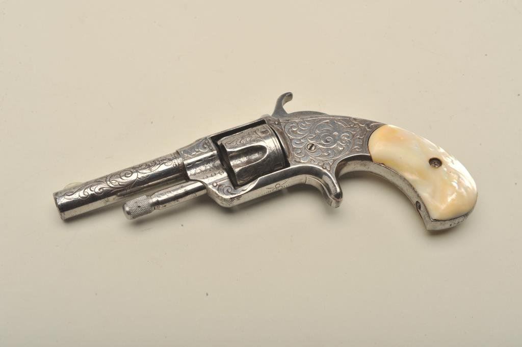 Lot 139 Otis Smith spur trigger revolver, Nimschke engraved, .30 caliber, 3