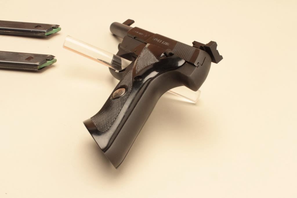 barrel, blued finish, checkered black plastic grips, one extra magazine, S/N G16925, in overall fine condition with majority of original finish, fine bore, action, markings and grips. (Modern/PPT). Est.: $250-$450.