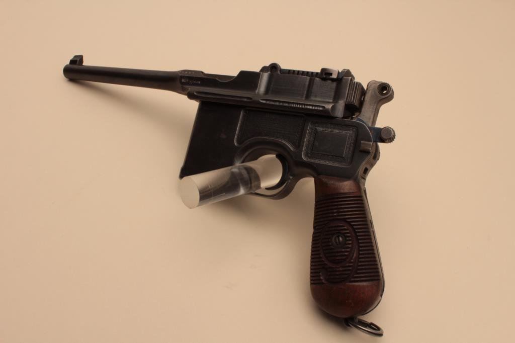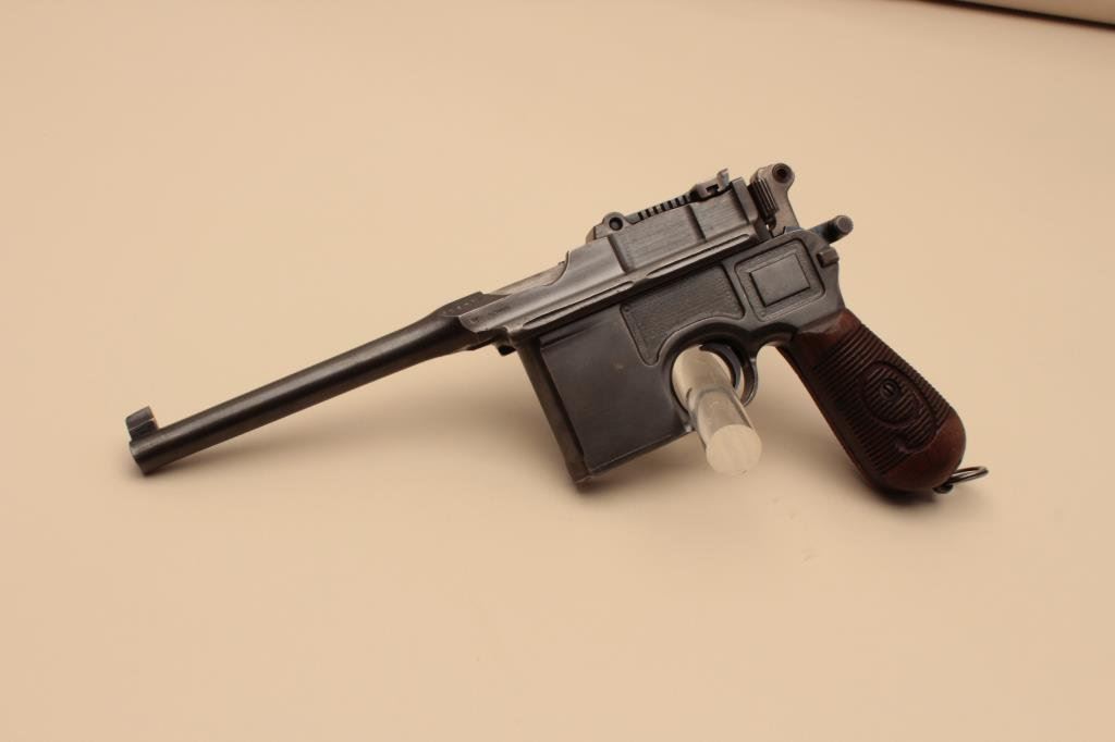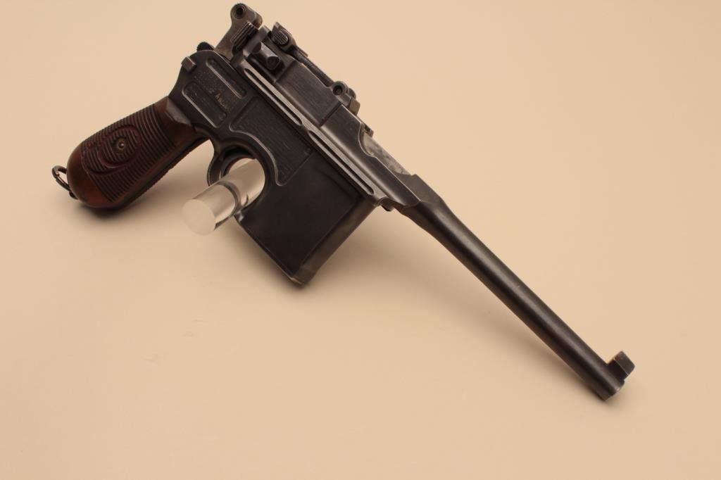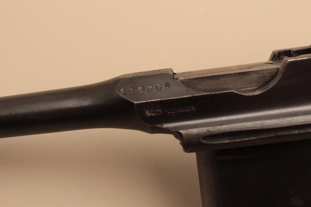 Lot 193 Mauser Big Red 9 broomhandle semi-automatic pistol, 9mm caliber, 5.5
