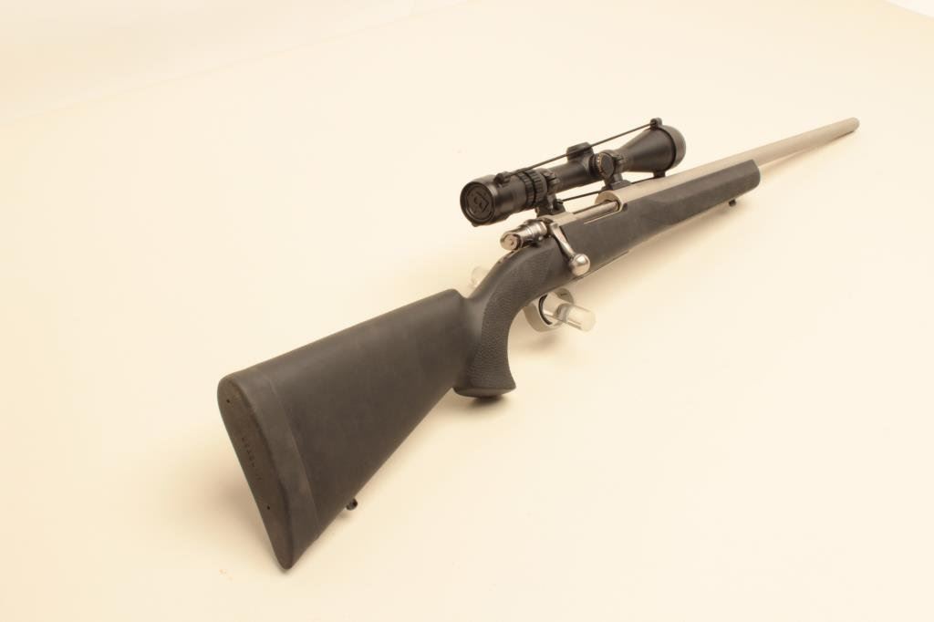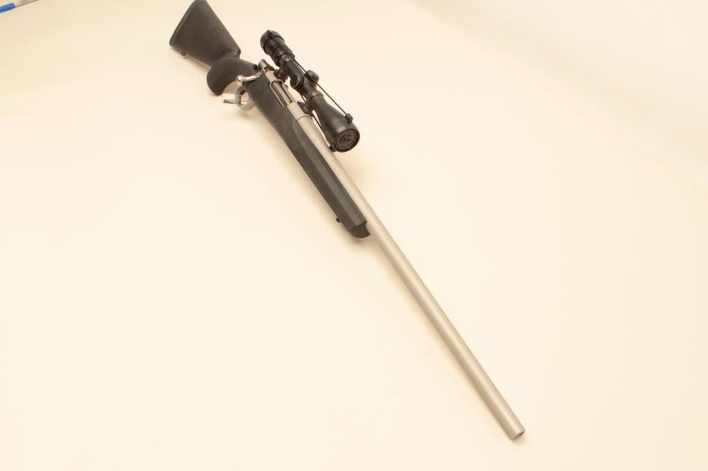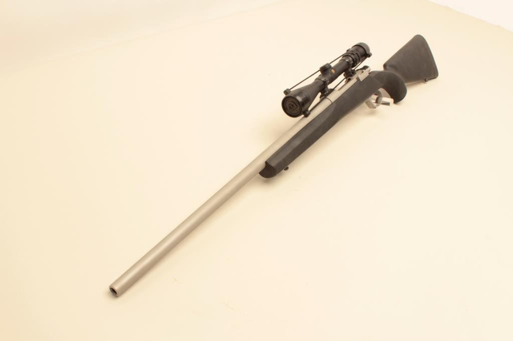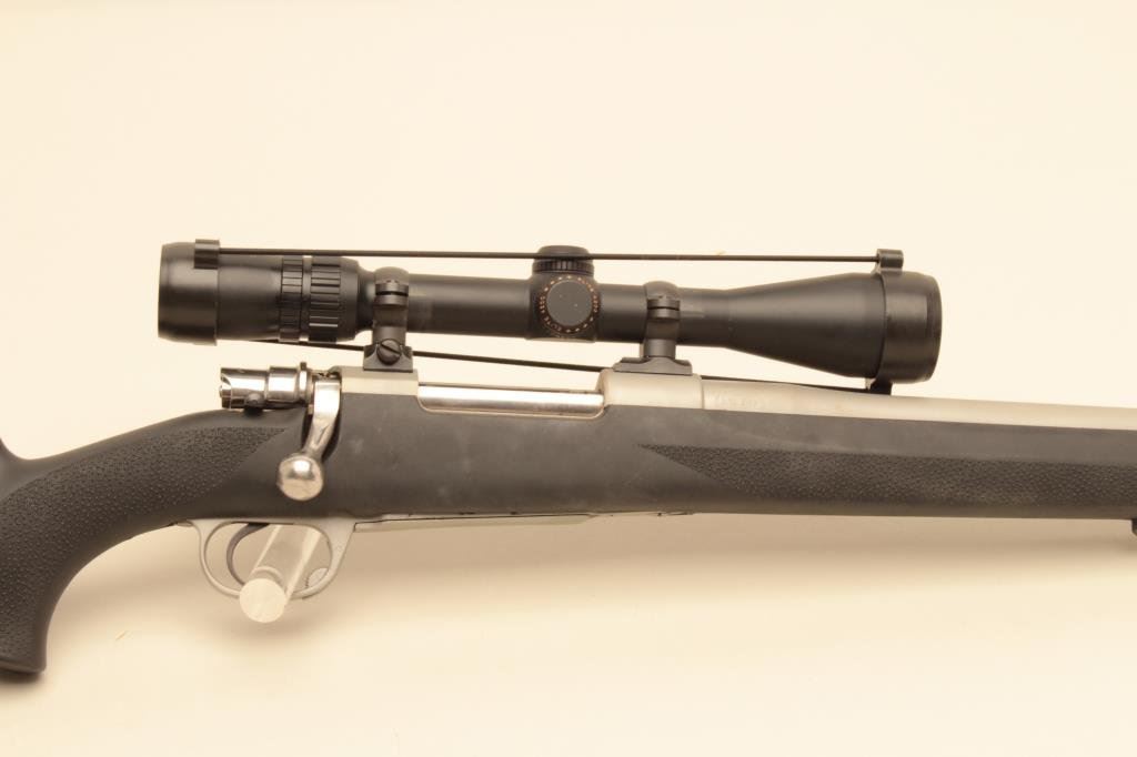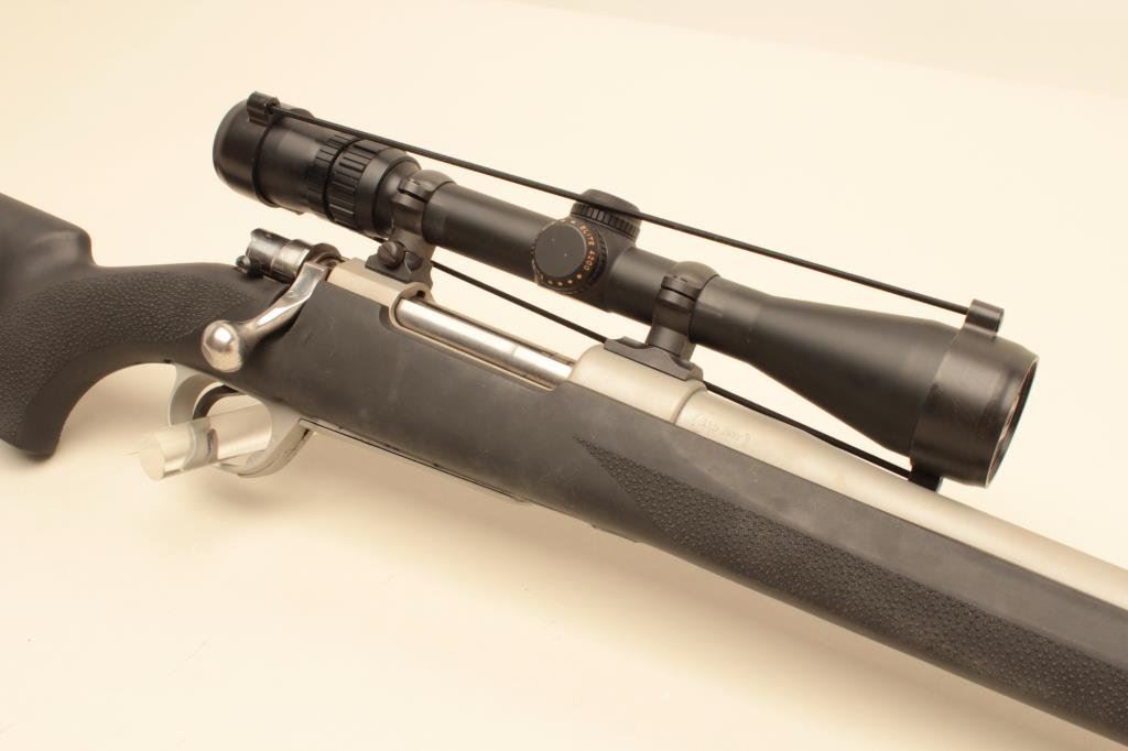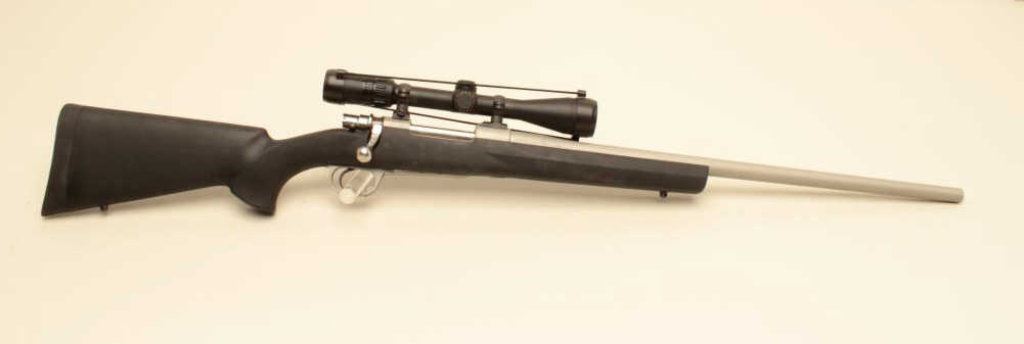 rifle is in very good condition with a 24” barrel marked, “BAD BOY” just ahead of the front ring. The barrel and receiver retain nearly all of their matte stainless finish with small mars and some loss of finish near the magazine. The bolt handle has been modified for scope clearance, polished and left in the white. The stock is a Hogue Over-molded synthetic in very good condition with a recoil pad providing a 13 5/8” LOP. The rifle is topped with two-piece mounts and a Bushnell Elite 4200 1.5 x 6 variable power scope with clear, crisp optics. The 0.416 Taylor is based on the 0.458 Winchester Magnum cartridge necked down to .416. The lot includes a set of custom Lee reloading dies. A great big game rifle in a powerful wildcat cartridge. Custom Mauser 0.416 Taylor Brass is included Est.: $700-$1,400. (Modern).