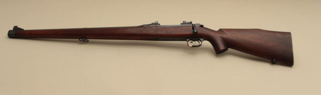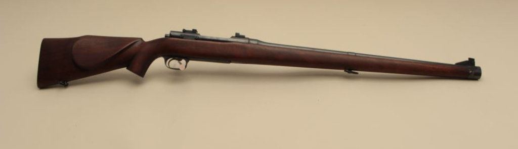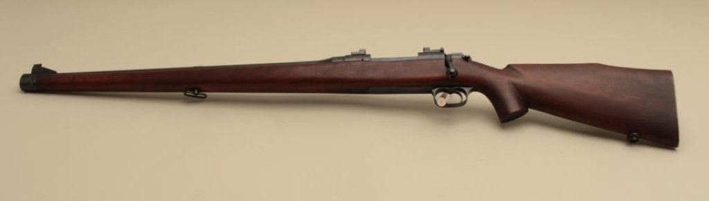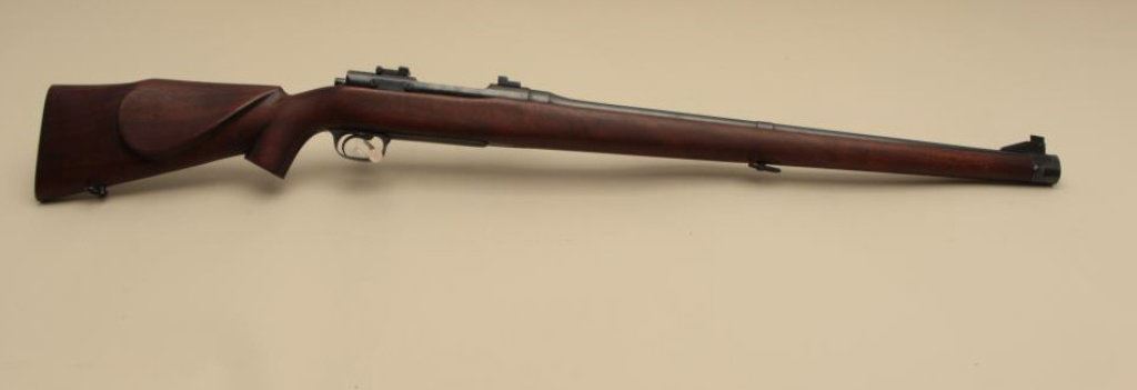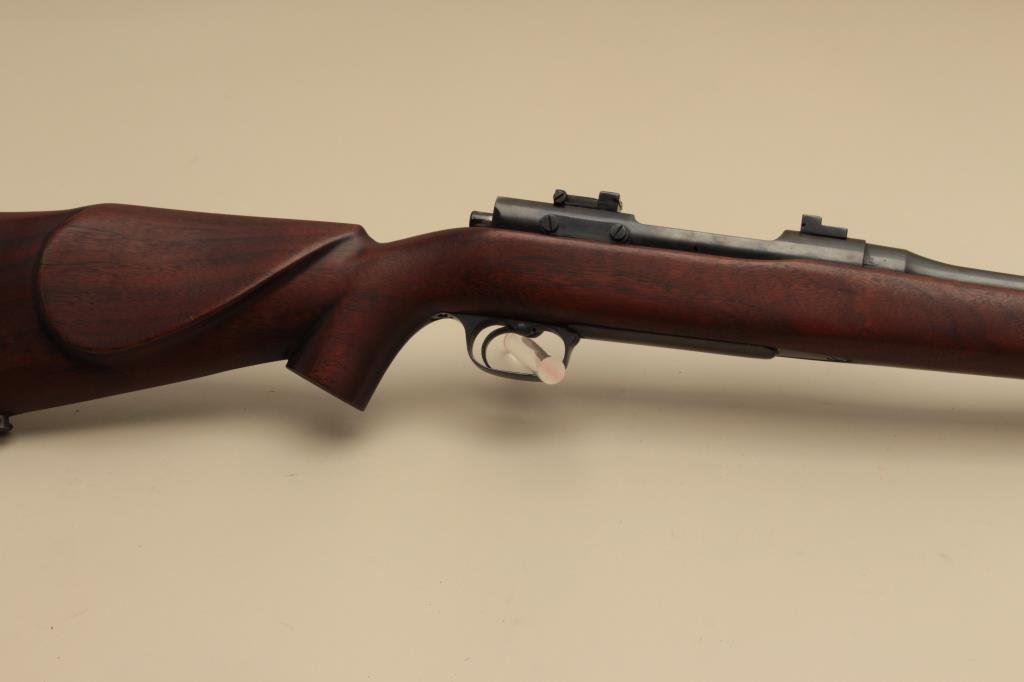 S/N, blued finish, full length wood stock, in overall very good + to near fine condition as customized with a very good + bore, crisp action and near fine wood stock. (Modern). Est.: $750-$1,500.