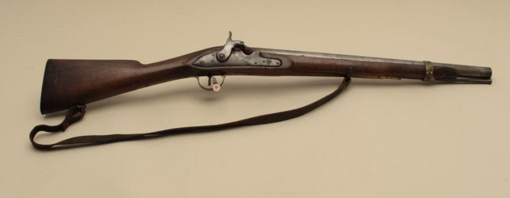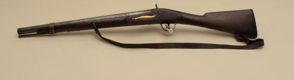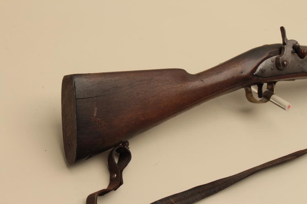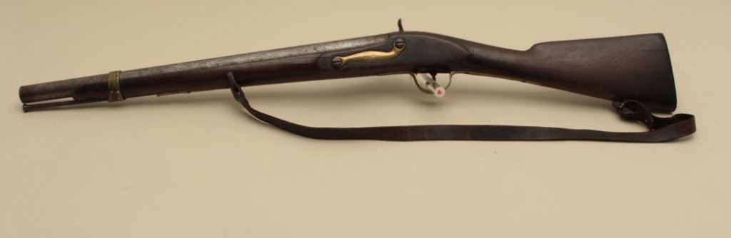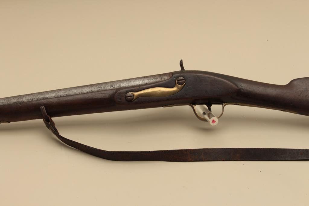 trigger guard, leather sling, .79 caliber, “Wilson”-marked lockplate; classic look. (Antique). Est.: $750-$1,500.