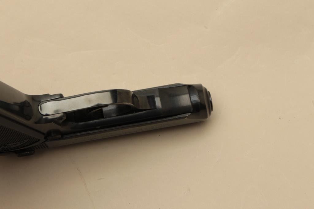 Serial #257083. The pistol is in very good overall condition with a 3 ½” barrel. The pistol retains the majority of its blued finish with light holster wear at the muzzle. The pistol is import marked with, “MADE IN FRANCE” on the slide. The checkered plastic grips are in good condition showing wear from use and carry. The bore is good, the action is crisp and markings are sharp on this French pistol manufactured on the PPK design. The lot includes two correct magazines. Est.: $250-$500. (Modern).