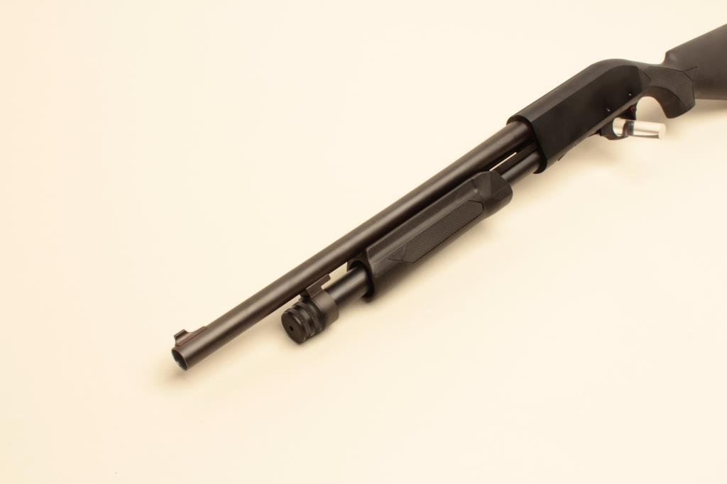 The shotgun is in very good overall condition with an 18” barrel. The barrel and receiver retain nearly all of their blued finish with some light handling marks noted. The checkered synthetic stock is in very good condition showing little use. The butt ends with a ventilated rubber pad providing a 13 ¾” LOP. The bore is very good, the action crisp and markings are sharp. Est.: $200-$400. (Modern).