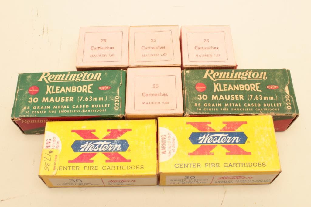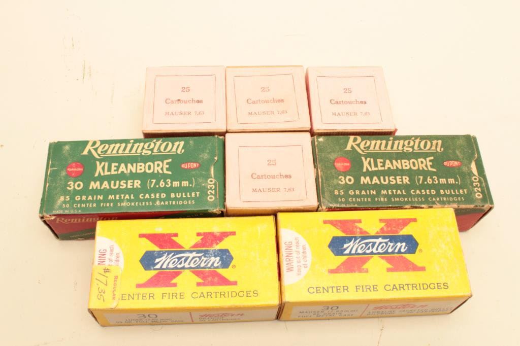 Lot 251 Lot of .30 Mauser (7.63mm) caliber ammunition by various makers;