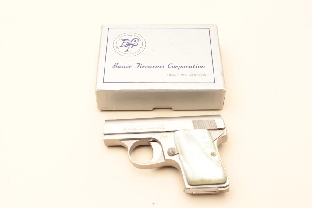 Lot 266 Bauer Firearms Corp. semi-automatic pistol, .25 caliber, 2 barrel, stainless,