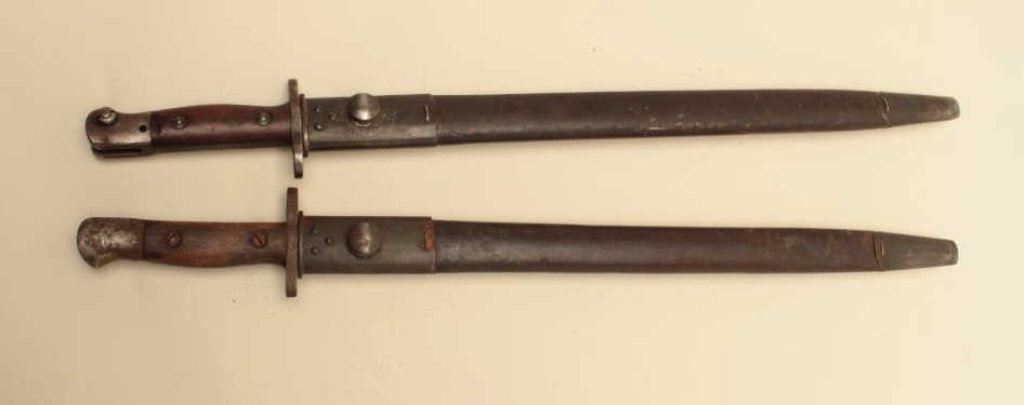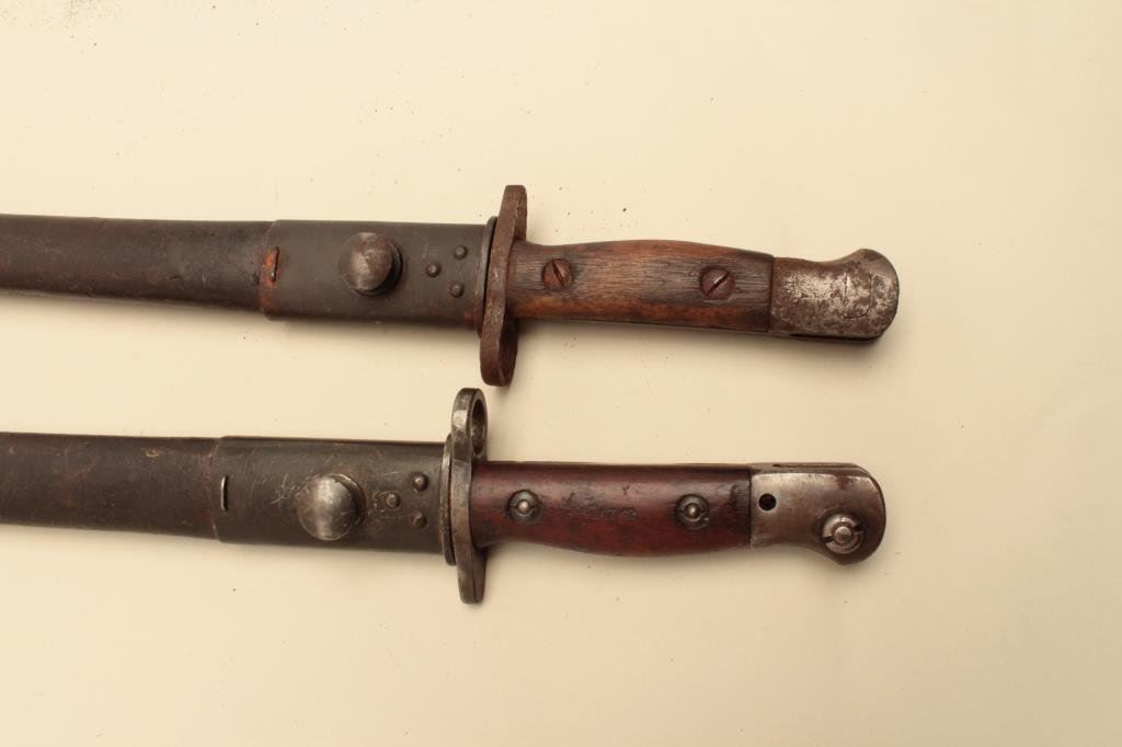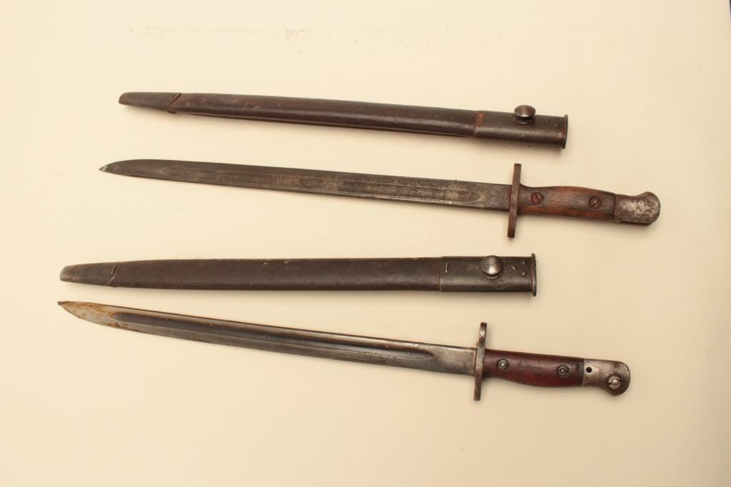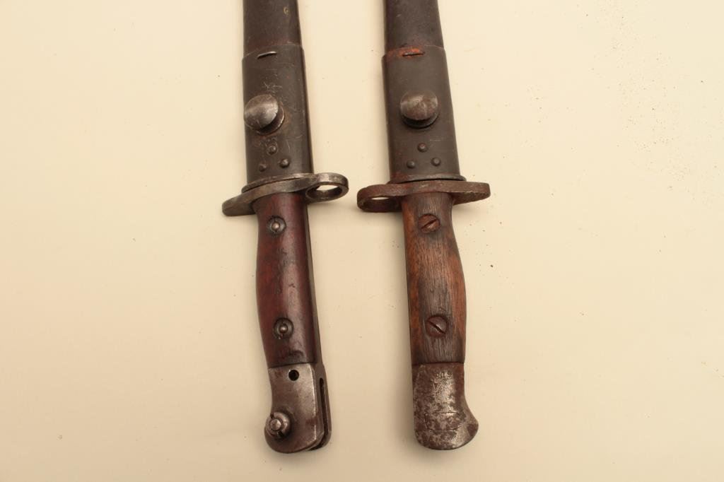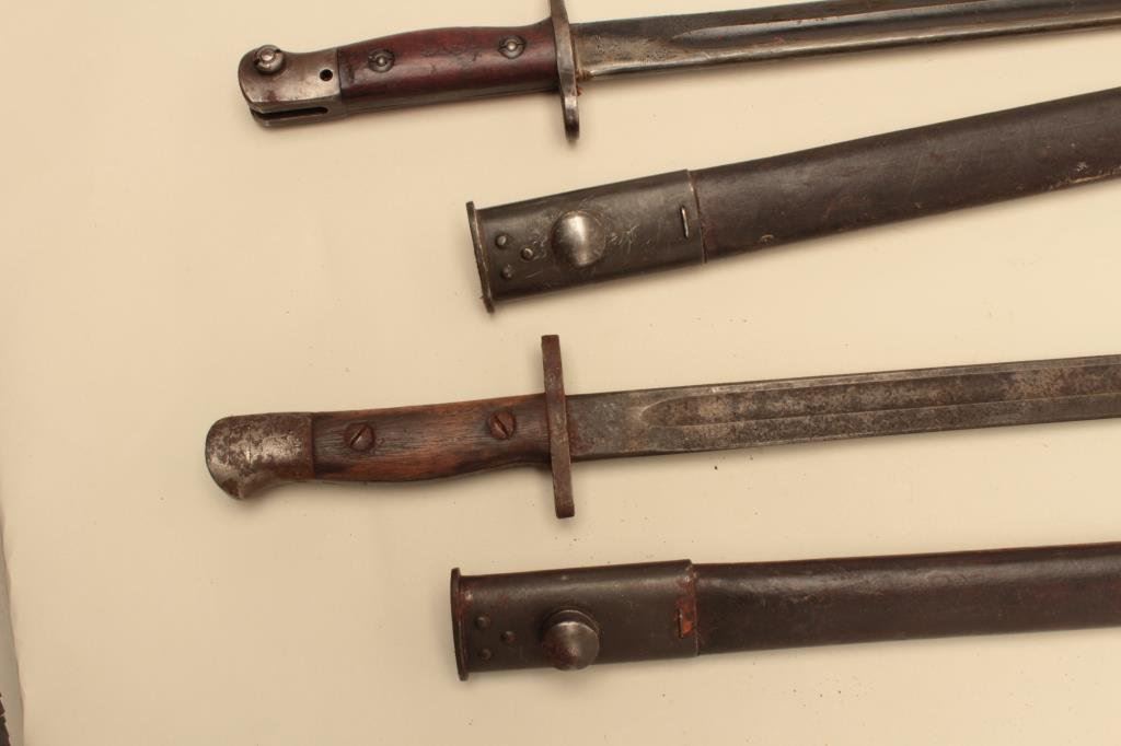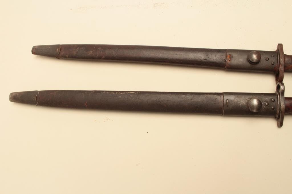 Lot 283 Lot of 2 long pattern Enfield bayonets with sheaths. Est.: