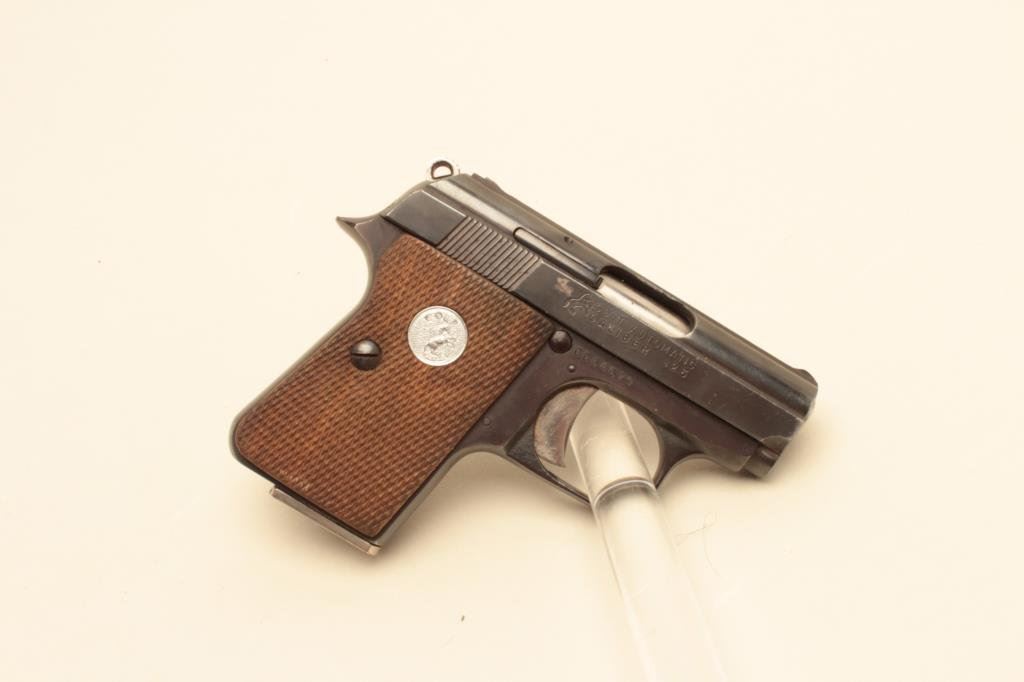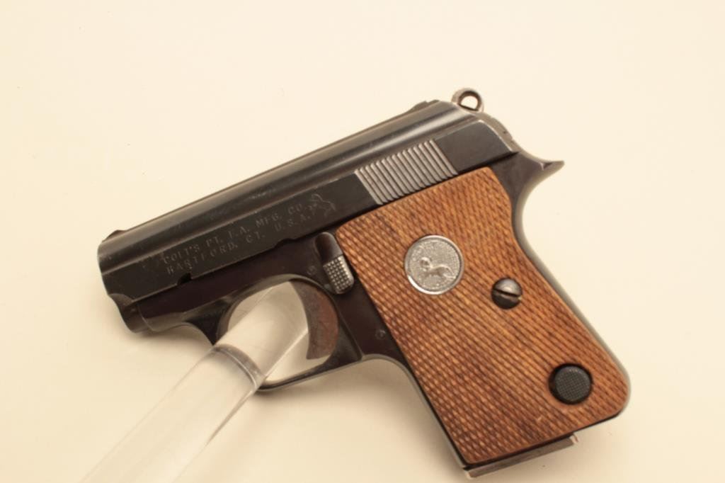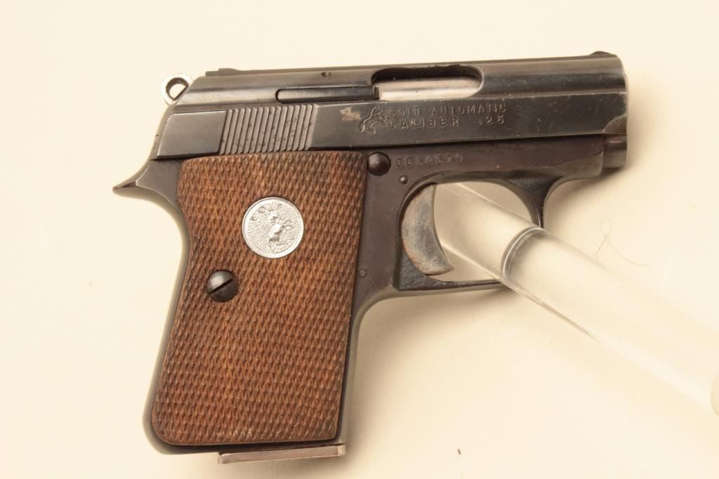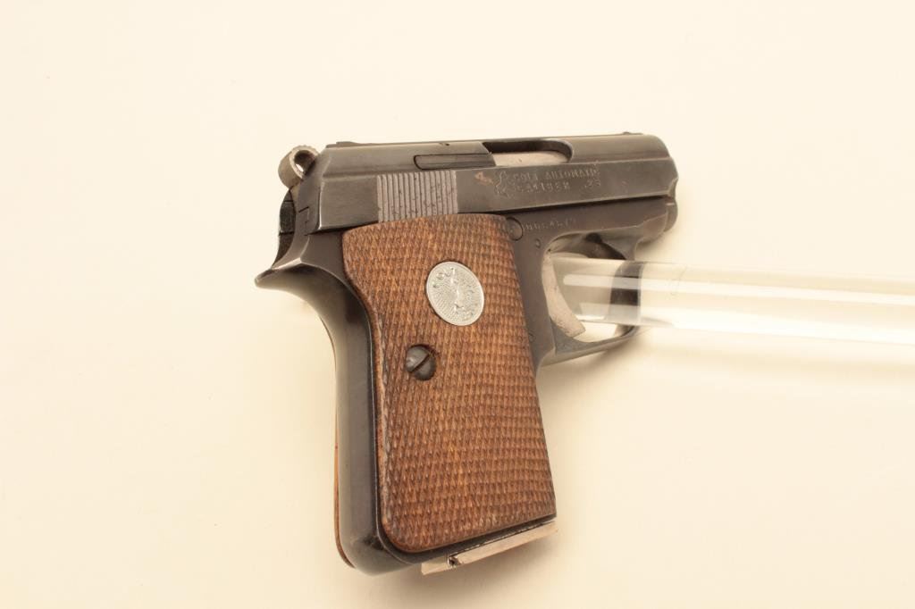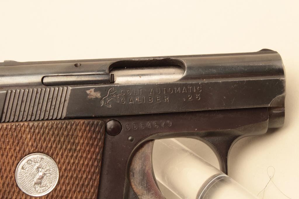 Lot 298 Colt .25 caliber semi-automatic pistol, 2 barrel, blued finish, checkered