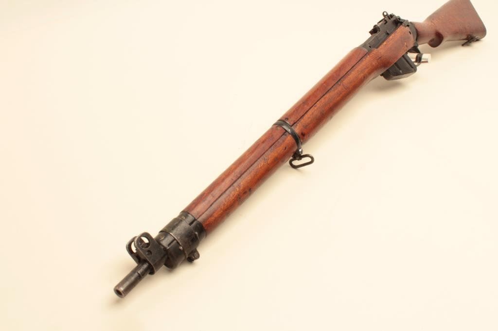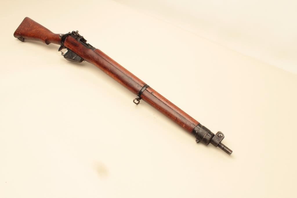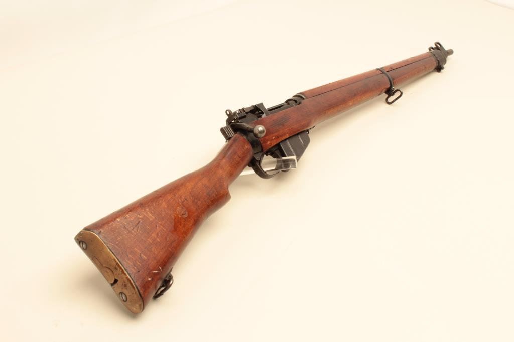.303 British caliber, barrel appears reduced in length at muzzle, military finish, wood stock, S/N 38513, in overall good condition with a good bore, action, markings and wood. (C&R). Est.: $200-$400.