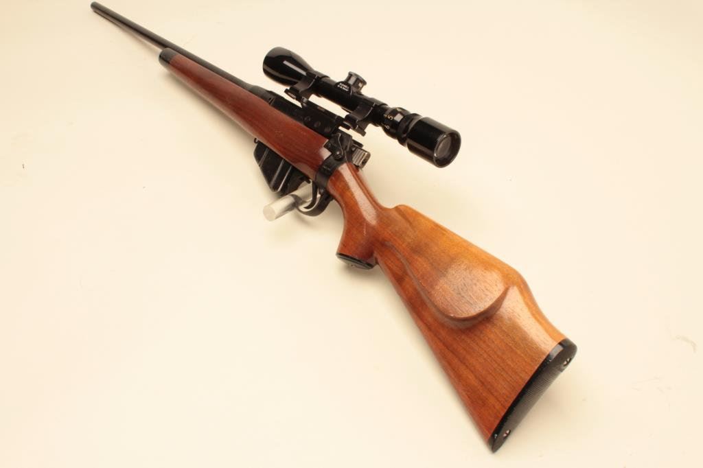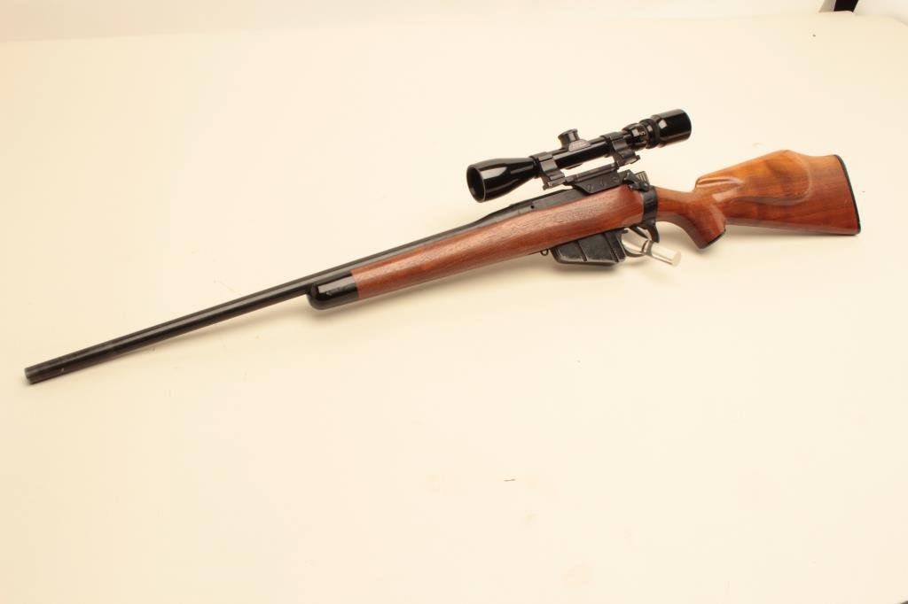action rifle, customized, .303 caliber, blued finish, sporterized wood stock, S/N 37L9988, in overall good condition with a good bore, action, markings and wood; mounted with a Bushnell 3x-9x Banner scope with good optics. (C&R). Est.: $150-$300.