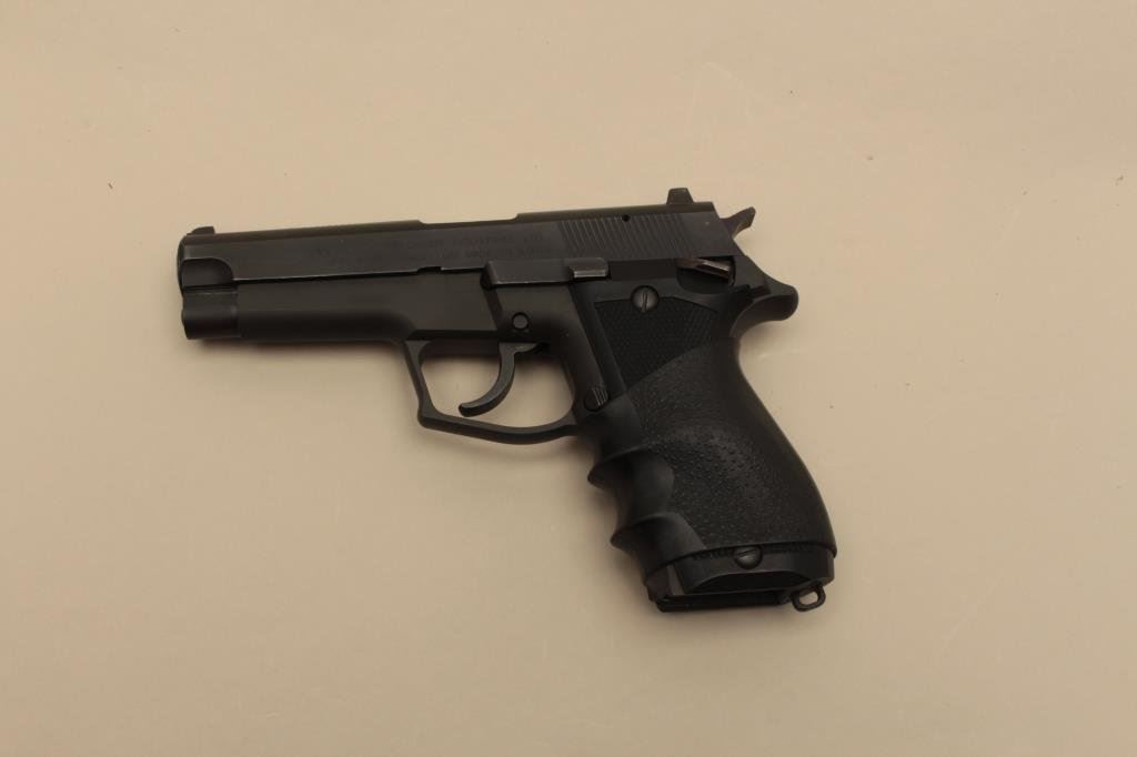 checkered black grips with stippled hard rubber adapter, S/N 19845, high capacity magazine (no sale to California resident), in overall very good to fine condition with a very good to fine bore, crisp action, fine grips. (Modern/PPT/HI CAP MAG-NO SALE TO CALIF. RESIDENT). Est.: $200-$400.