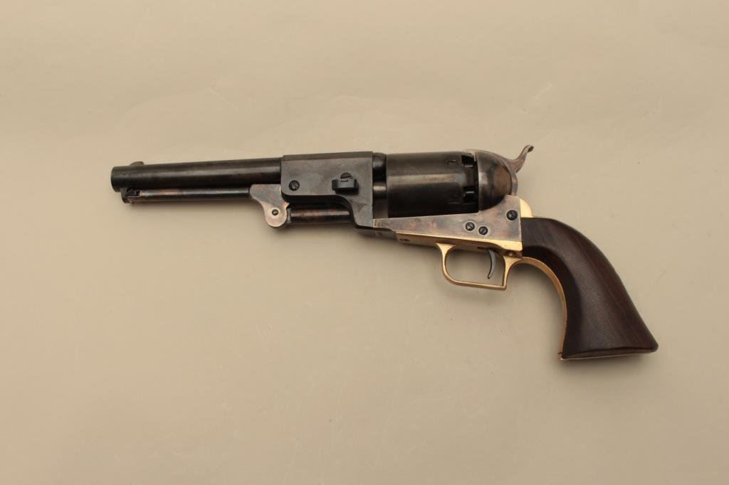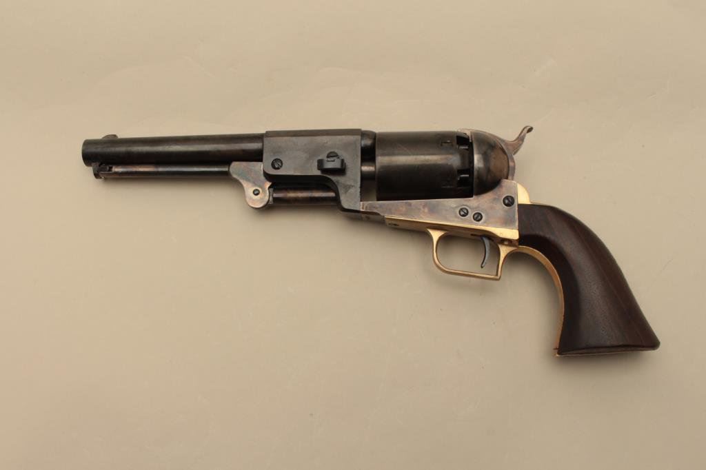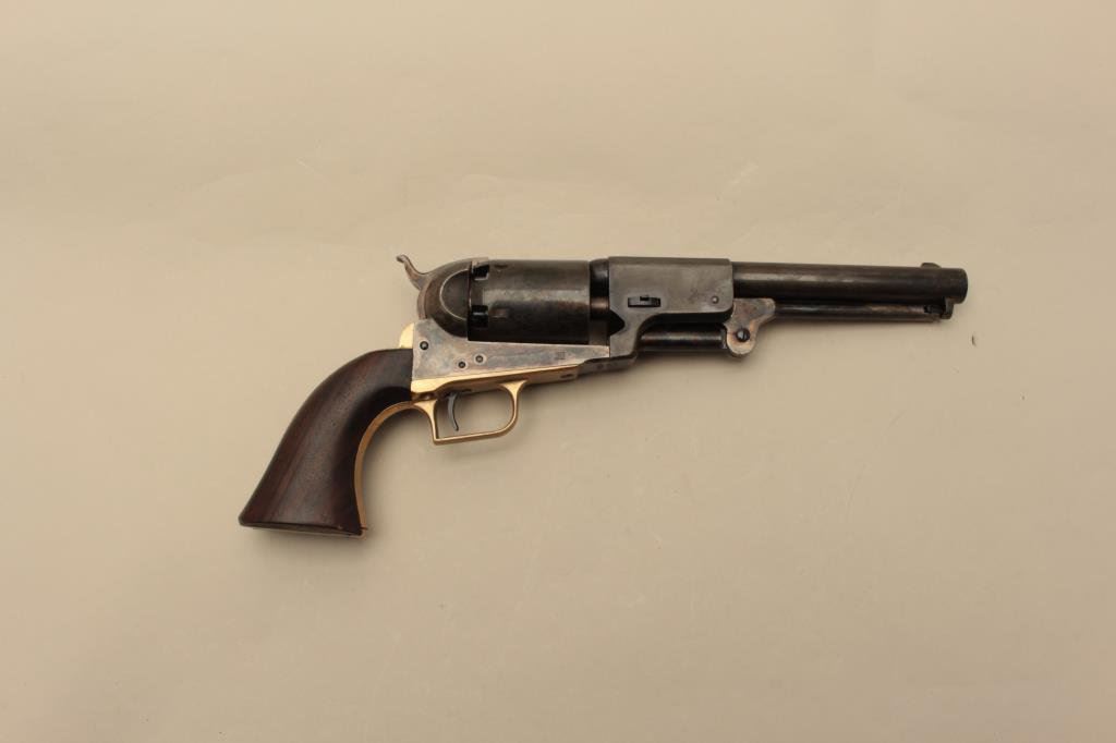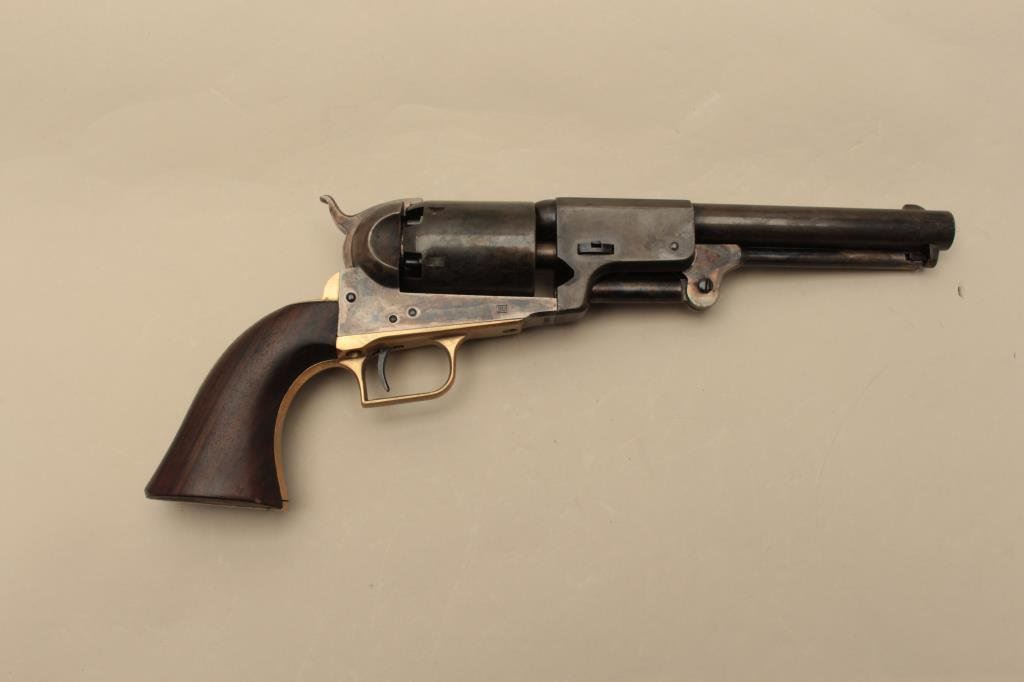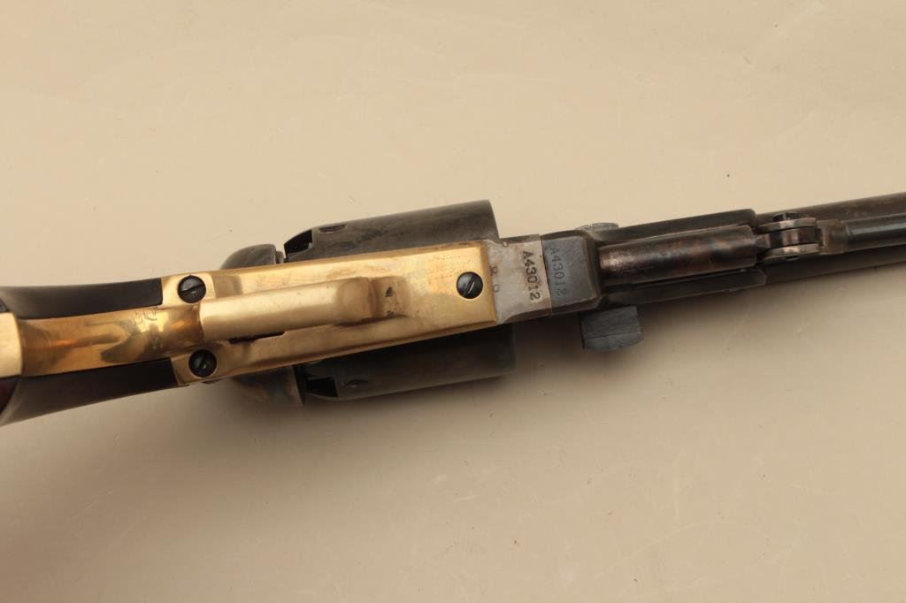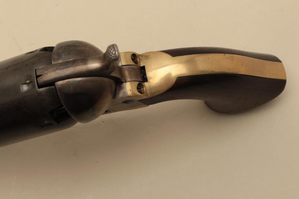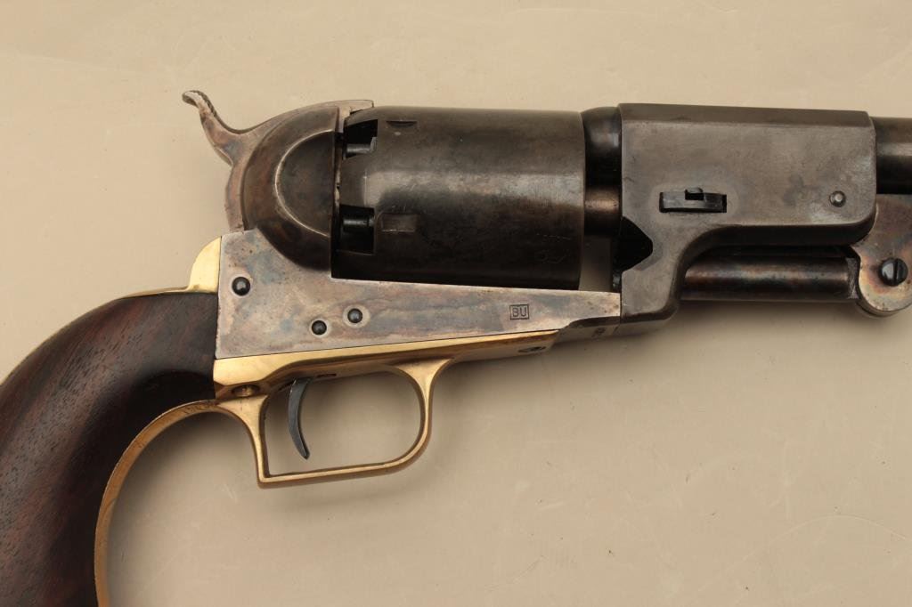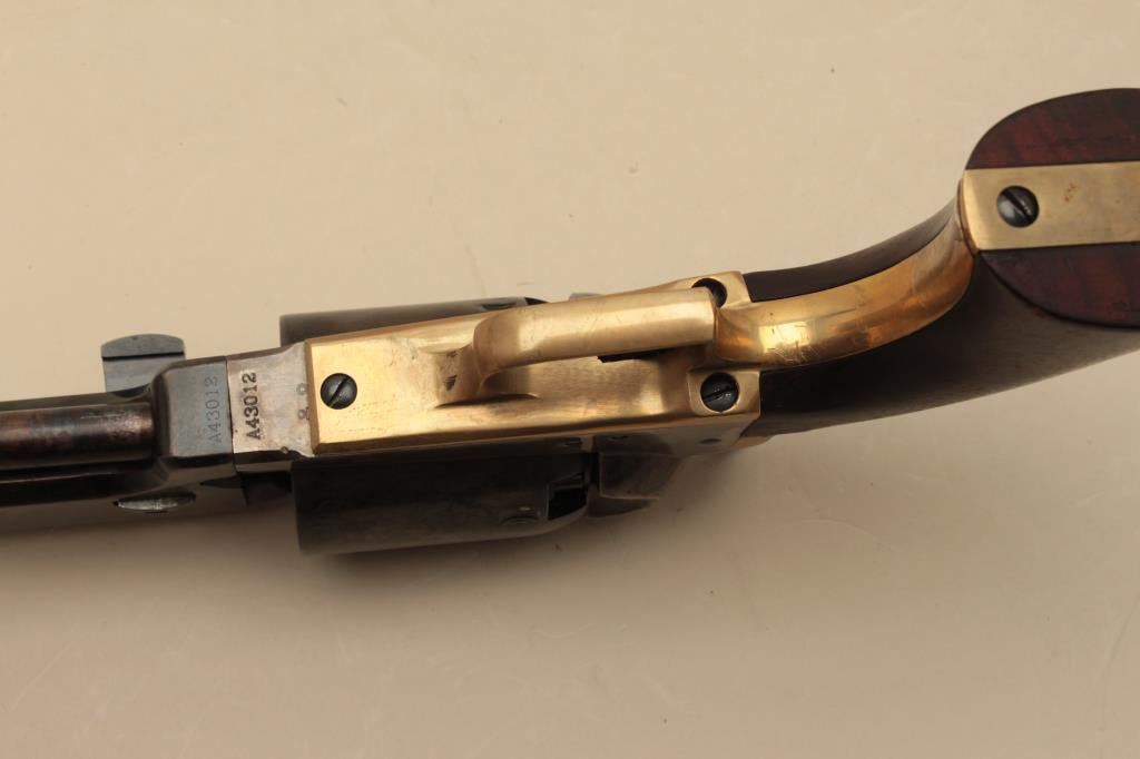 caliber, 7.5” barrel, blued and case hardened finish, wood grips, S/N A43012, in overall very good condition; crisp action, very good grips. (Percussion). Est.: $150-$300.