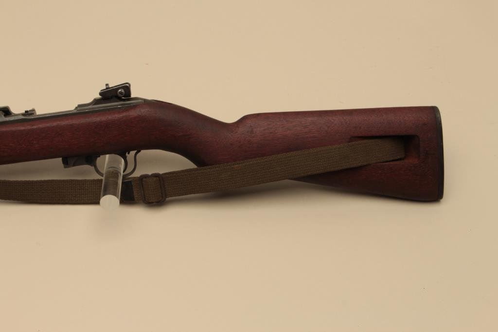 Underwood barrel, military finish, flat bolt, bayonet lug and wood stock with woven sling, S/N 2374824, in overall very good + condition with a very good bore, crisp action, good markings and very good wood stock; high capacity magazine (MAGAZINE NOT FOR SALE TO CALIF. RESIDENTS). (C&R). Est.: $500-$1,000.