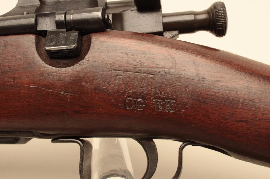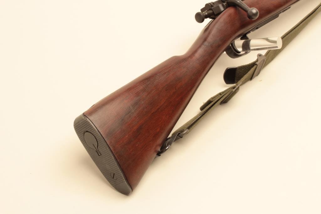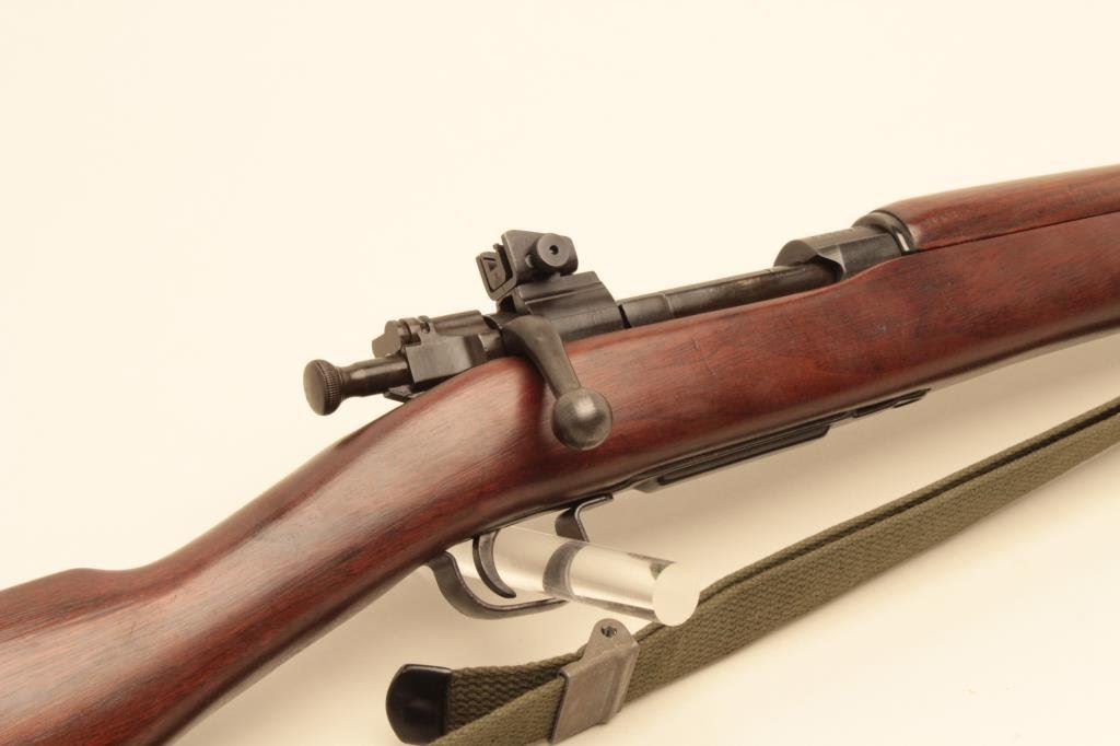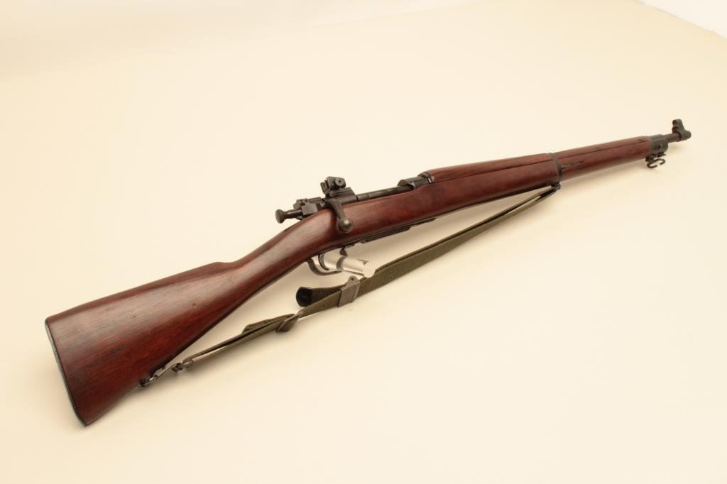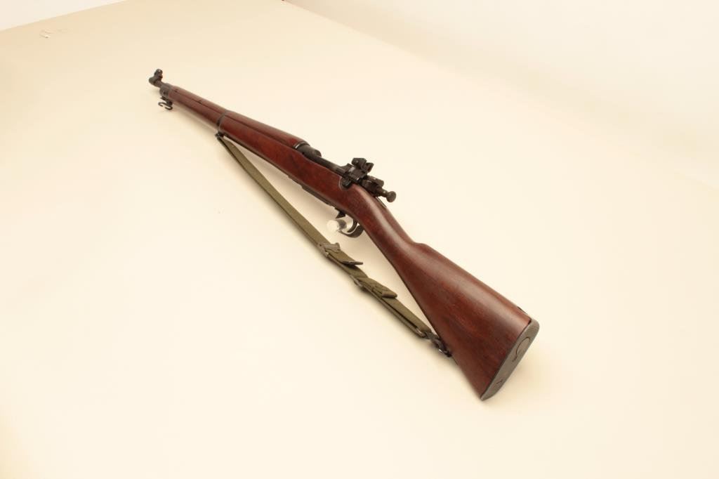 caliber, with Remington-marked barrel dated 1-43, military finish, wood stock, green woven sling, S/N 3386944, in overall very good to near fine condition with majority of military blued finish, very good bore, crisp action and markings, very good stock with circle P proof and crossed cannons, FJA, OG and EK inspections on left side of stock above trigger. (C&R/PPT). Est.: $500-$1,000.