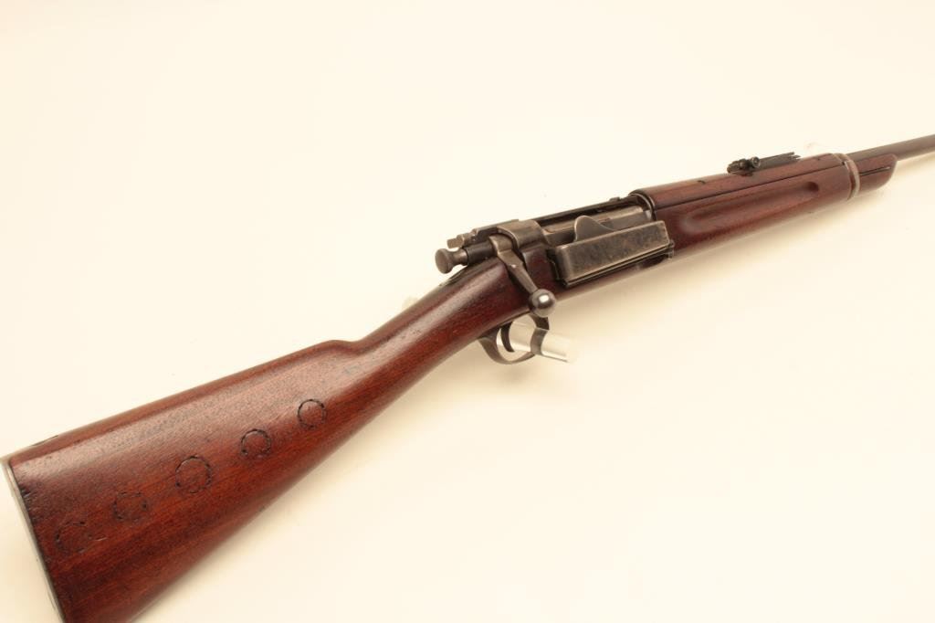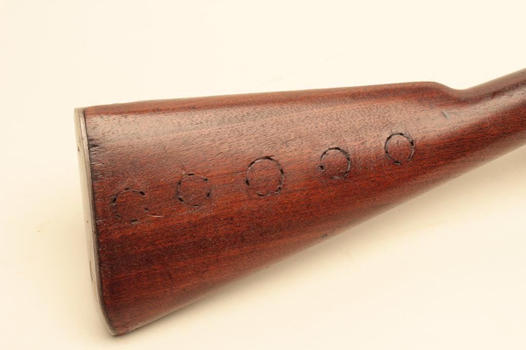 caliber, blued finish, wood stock, S/N 346552, in overall very good + condition with a very good bore, crisp action and markings, considerable military finish to metal surfaces remaining, overall good wood with dime-size marks on the right side of the butt stock (5) and 1 on the left side of the stock above the trigger. (C&R). Est.: $700-$1,400.