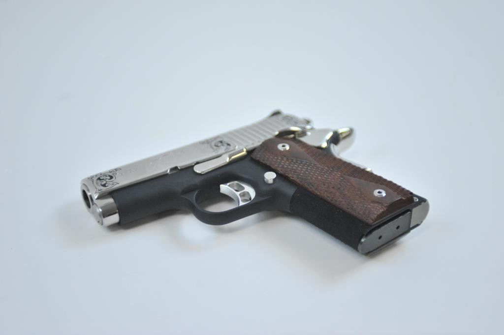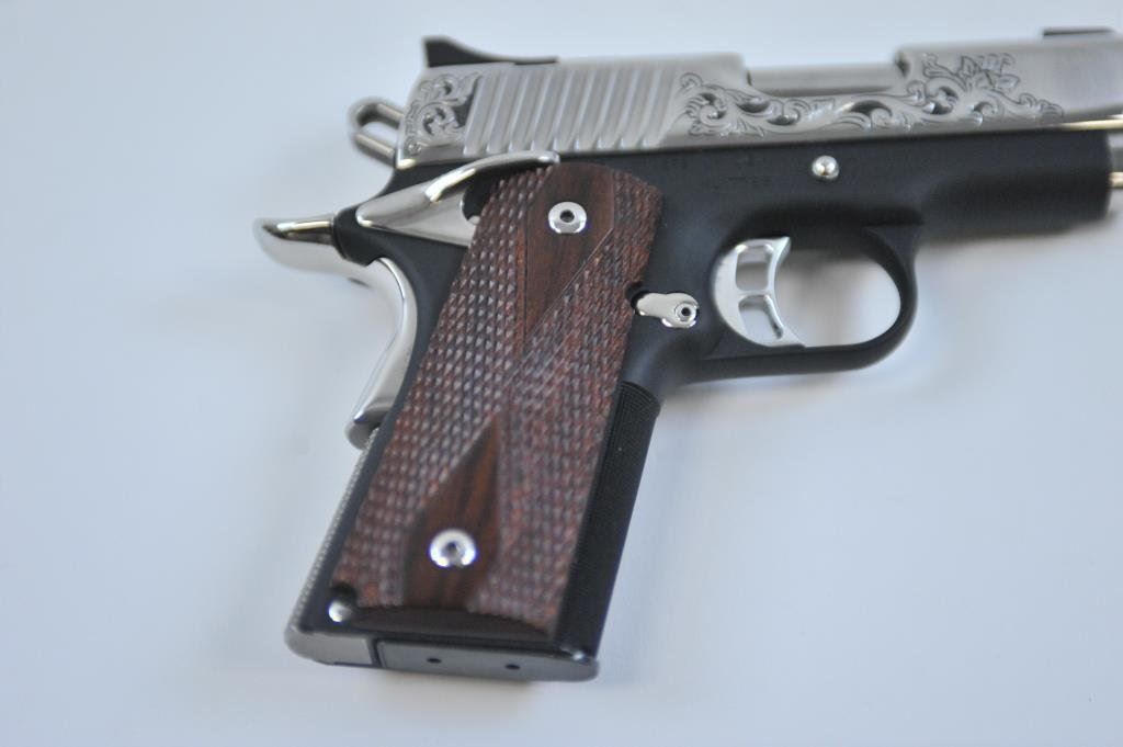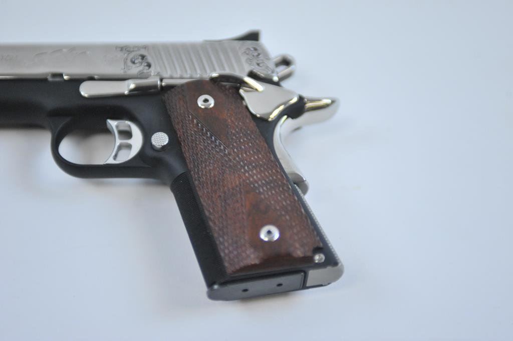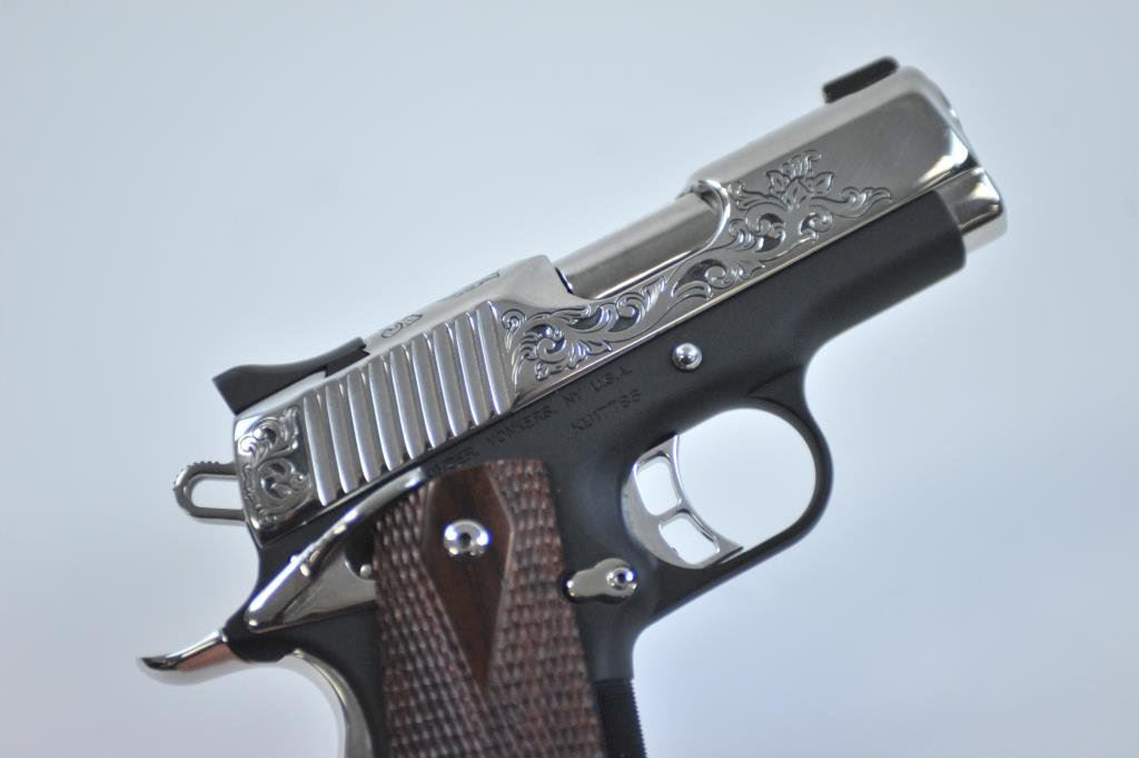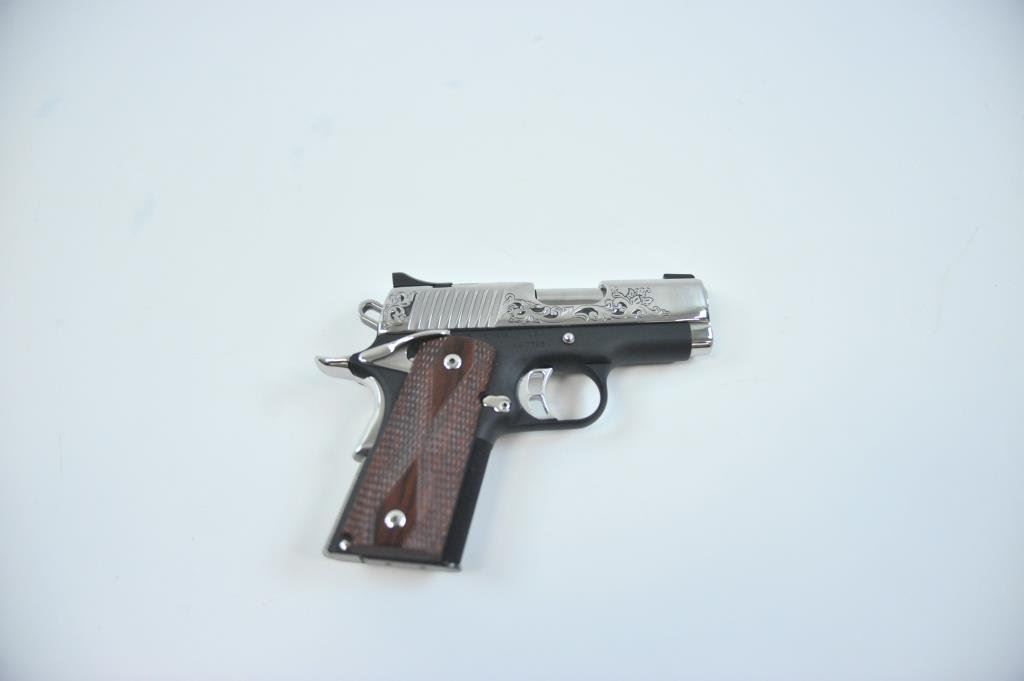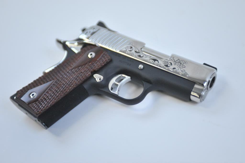 ACP, scroll engraved and high polished slide with matte black frame, diamond rosewood grips. Pistol is in excellent condition overall, in the original box with manual. One mag. (Modern/PPT) Est. $900-1800