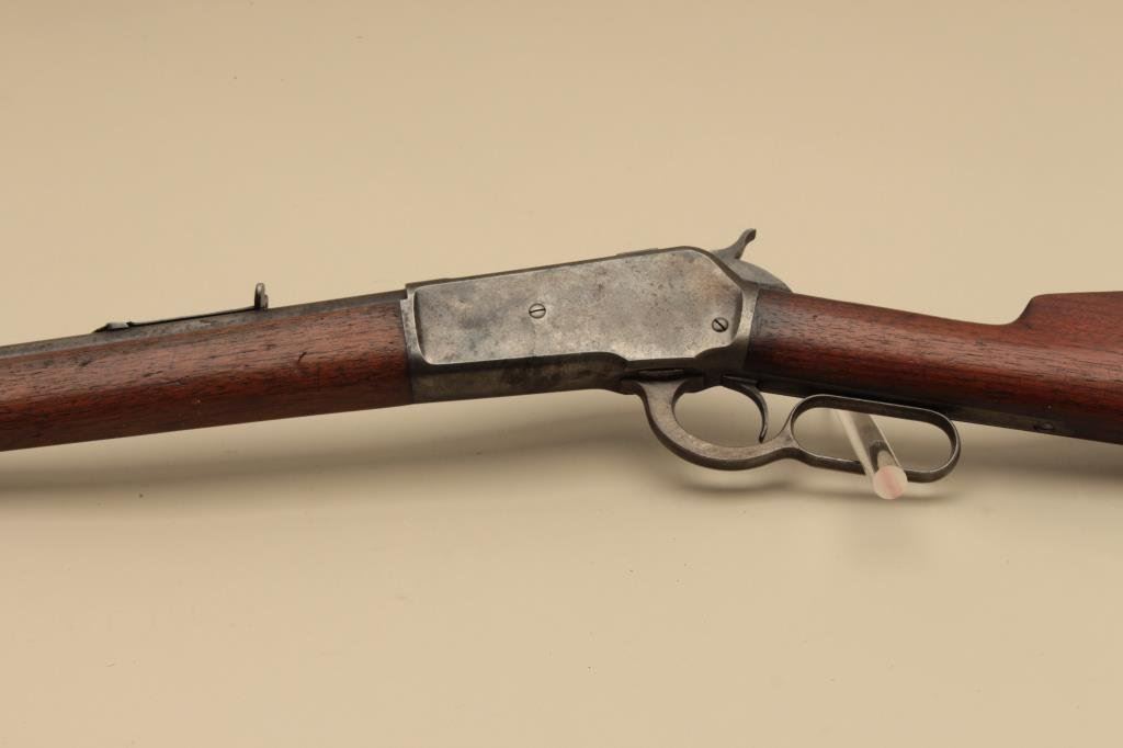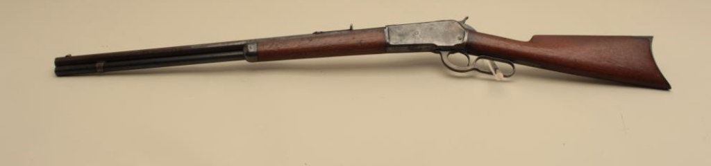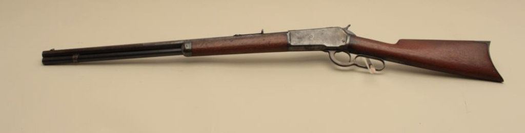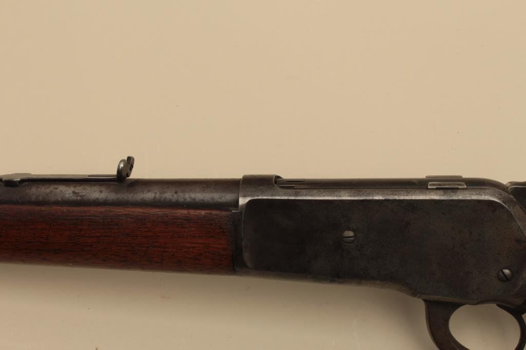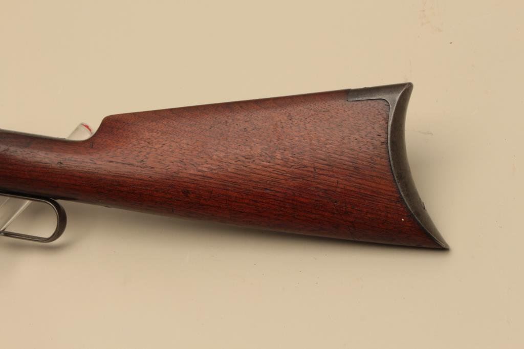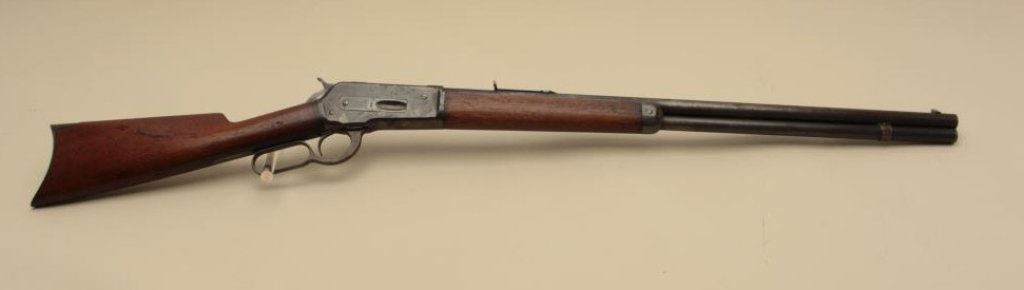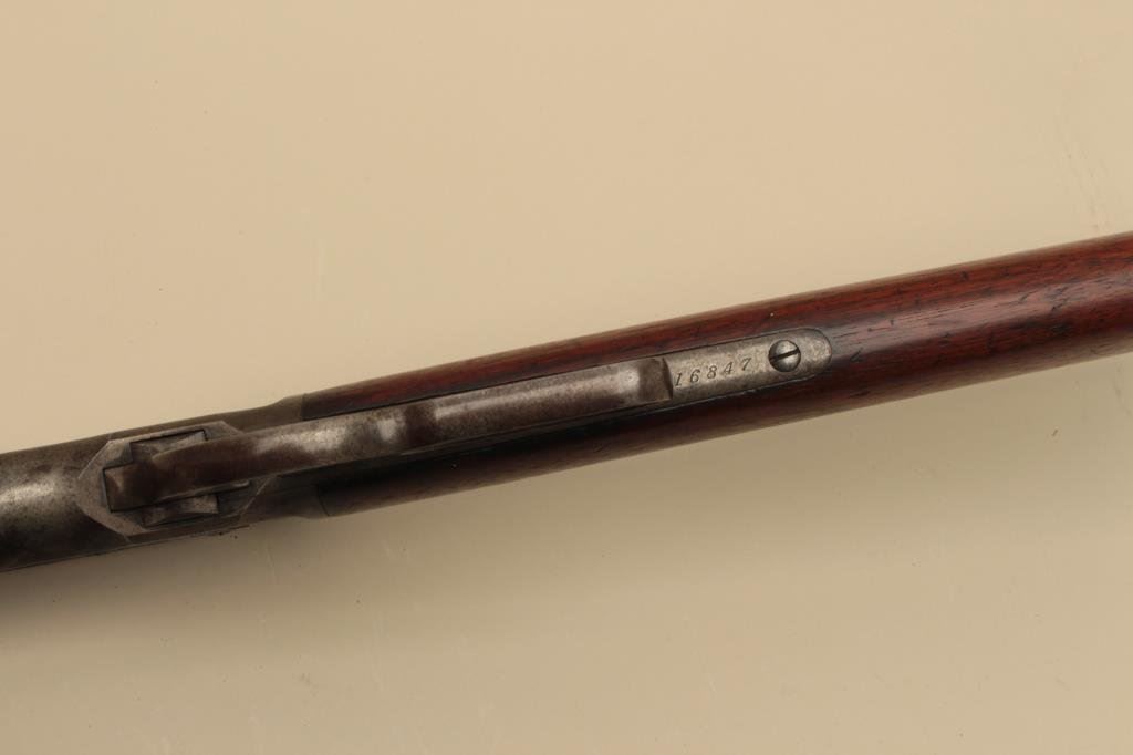 round barrel, blued and case hardened finish, wood stocks, S/N 116847, in overall good condition with blued finish remaining on loading tube, brown patina to barrel, traces of case colors on receiver, scattered spots of erosion and light pitting confined primarily to the barrel, crisp action, good markings, good bore and good + wood. (Antique). Est.: $900-$1,800.