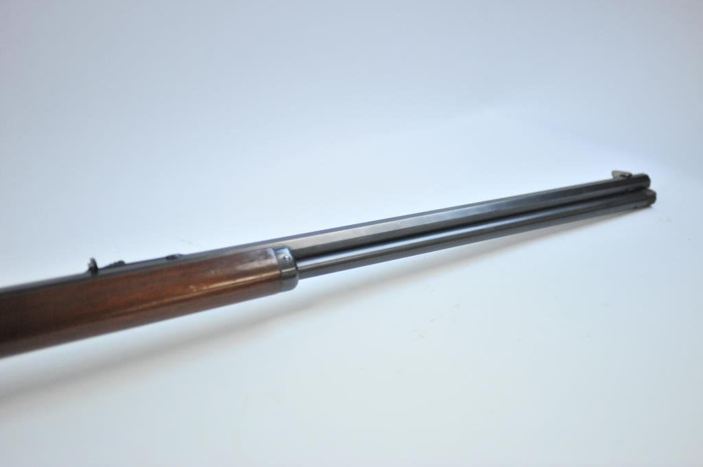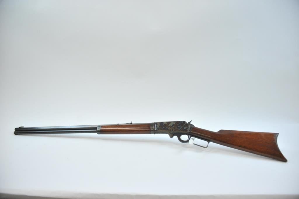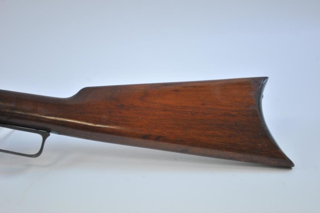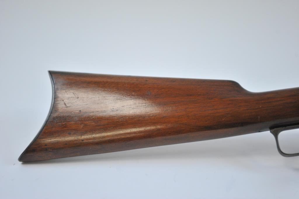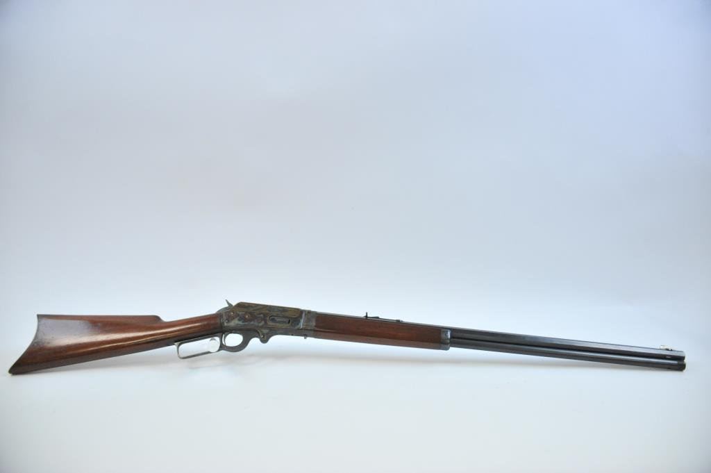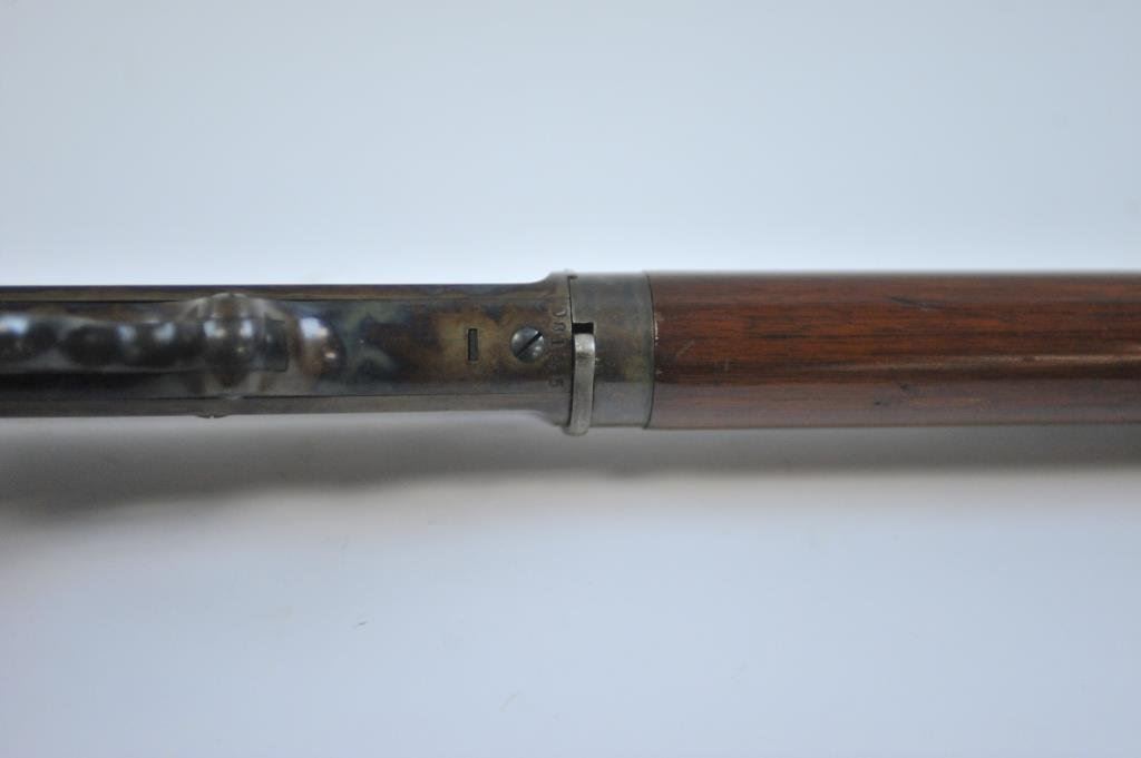 .30-30 caliber, S/N D81845 with a 26” octagon barrel, full magazine and crescent butt with blue and case hardened finish. This rifle remains in stunning original condition with 98%-99% plus original blue and fiery case colors showing rainbow hues with the original lacquer remaining. The stocks are excellent with minute storage marks. Sharp and crisp with excellent markings. A strong 9.9 on a 42745 scale and almost impossible to improve upon. (C&R) Est.: $3500-$7000