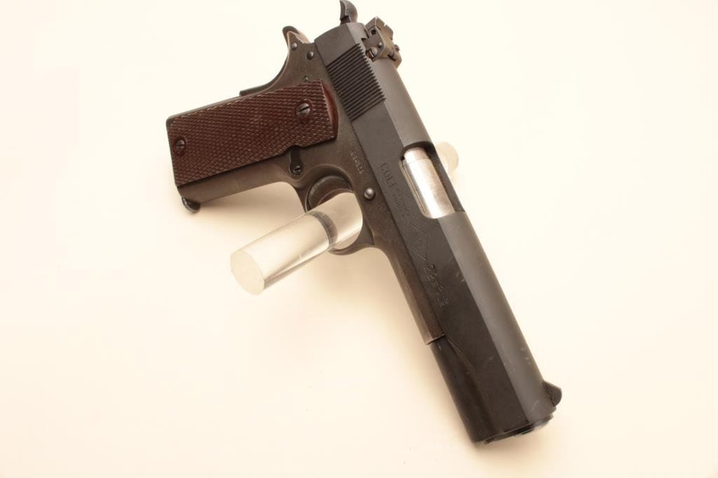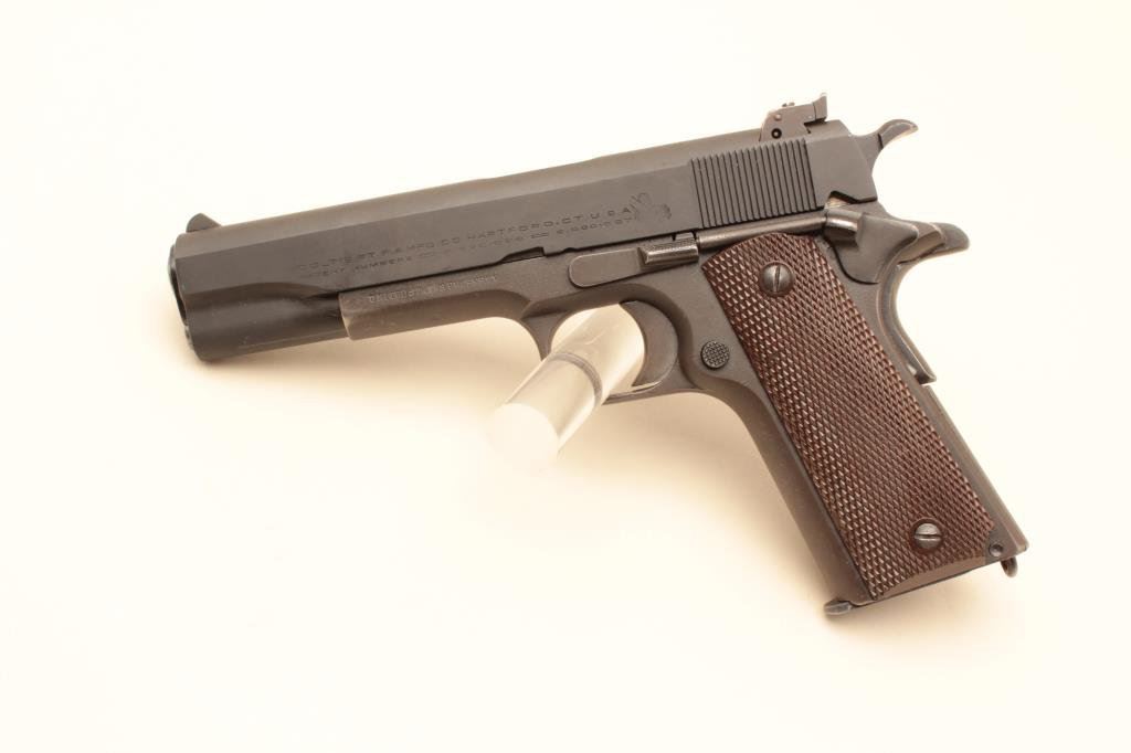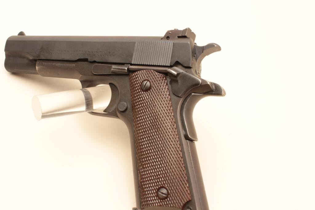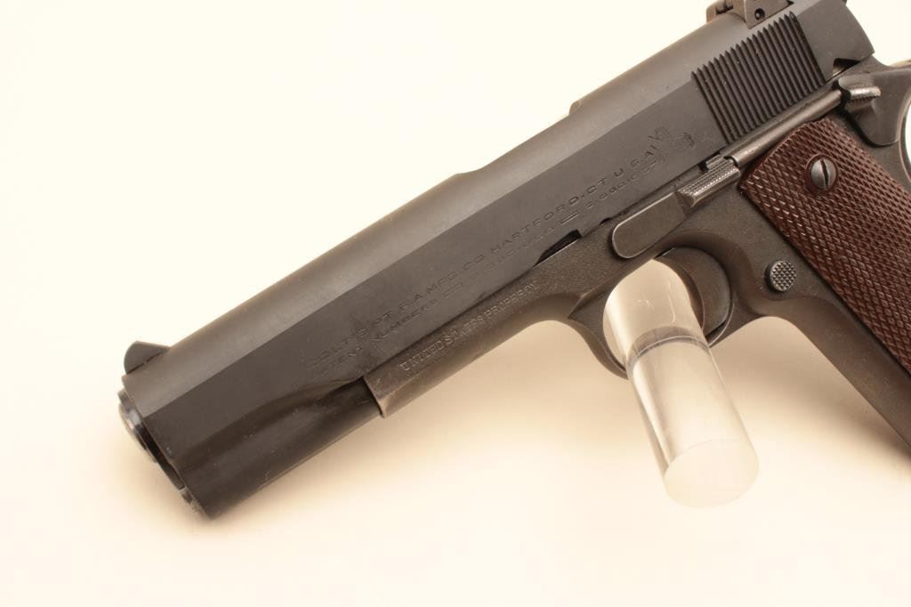 parkerized finish, United States Property-marked, checkered maroon grips, S/N 94269, in overall very good to fine condition with majority of military finish remaining, fine bore, crisp action, sharp markings and very good grips. (Modern/PPT). Est.: $1,400-$2,800.