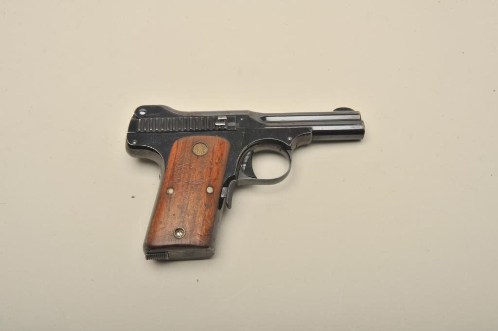 finish, smooth wood medallion grips, S/N 3407, in overall very good to near fine condition showing the majority of its original blued finish with some scattered minor spots of erosion, near fine bore, crisp action and sharp markings, very good + grips. (C&R/PPT). Est.: $400-$800.