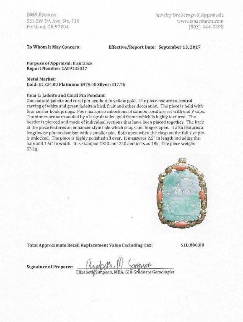 Lot 525a One of a kind No Treatment/Natural Carved Jade and Coral