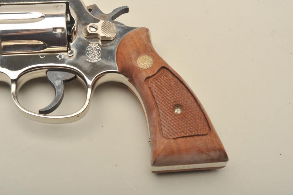 caliber, 2” barrel, nickel finish, checkered wood medallion grips, S/N 9D94350, in overall like new condition and in factory blue cardboard box with end label numbered to this gun. (Modern/PPT). Est.: $350-$700.