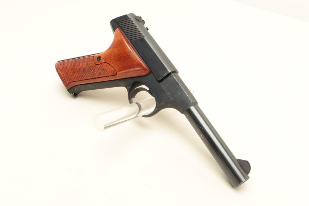 finish, checkered wood grips, S/N 184760-C, in overall excellent condition showing little use, very minor muzzle high point wear and a couple minor nicks to finish on bottom of barrel, fine bore, action, markings and grips; accompanied by a two piece wood grain cardboard box with red and black insert. (Modern/PPT). Est.: $400-$800.