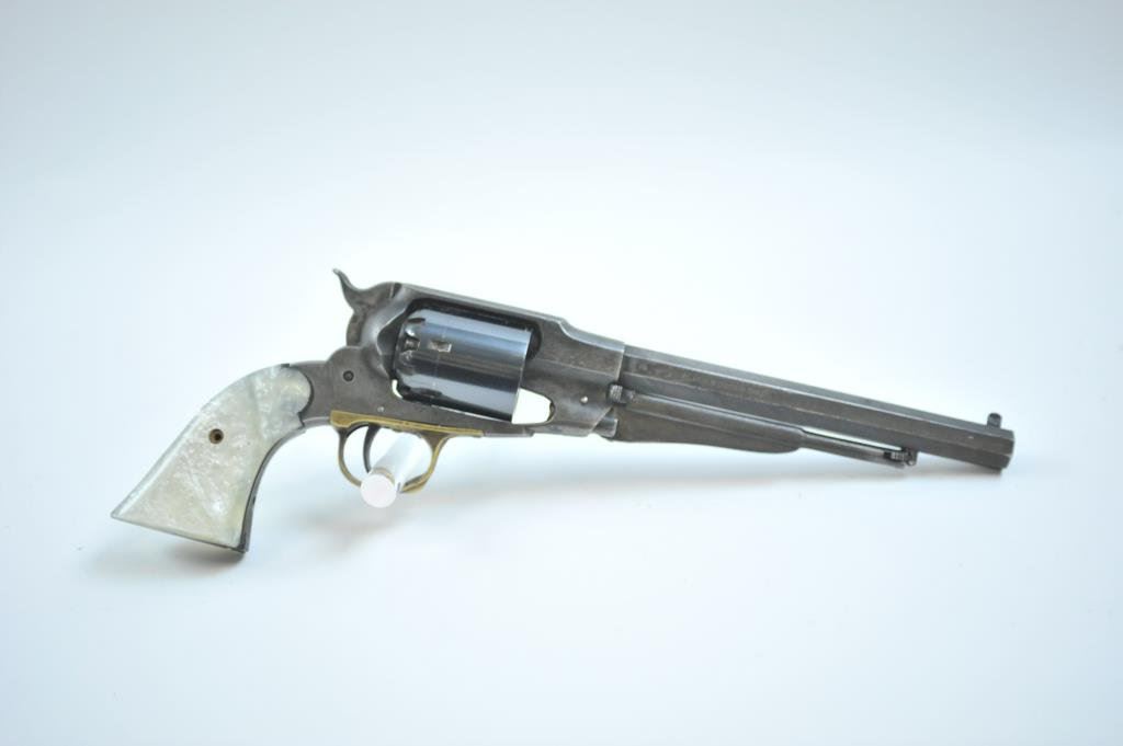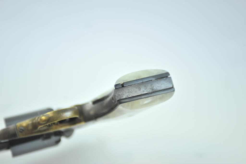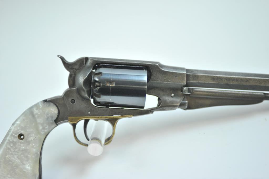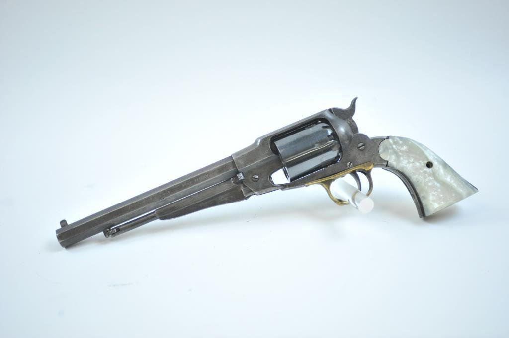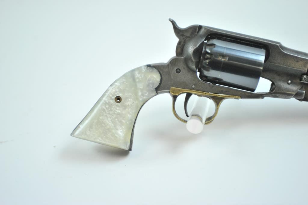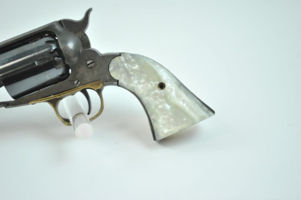 revolver, .44 caliber blackpowder, octagon barrel, simulated pearl grips, S/N 31858; aged frame and barrel assembly, action needs work, fair to good grips. (Percussion). Est.: $375-$575.