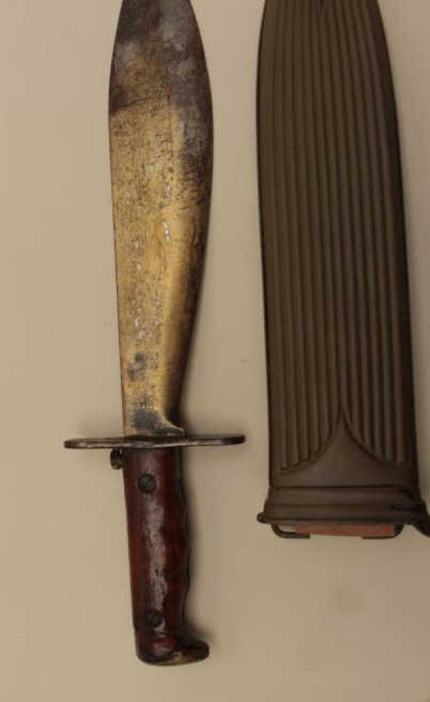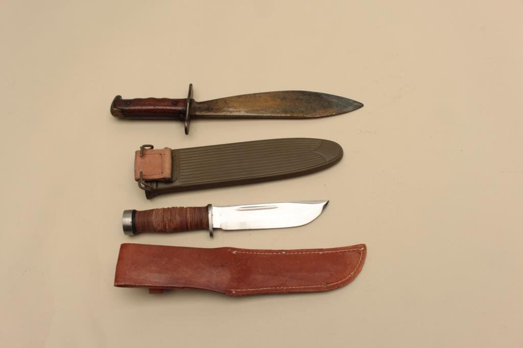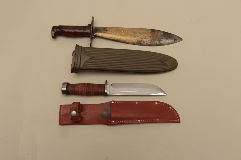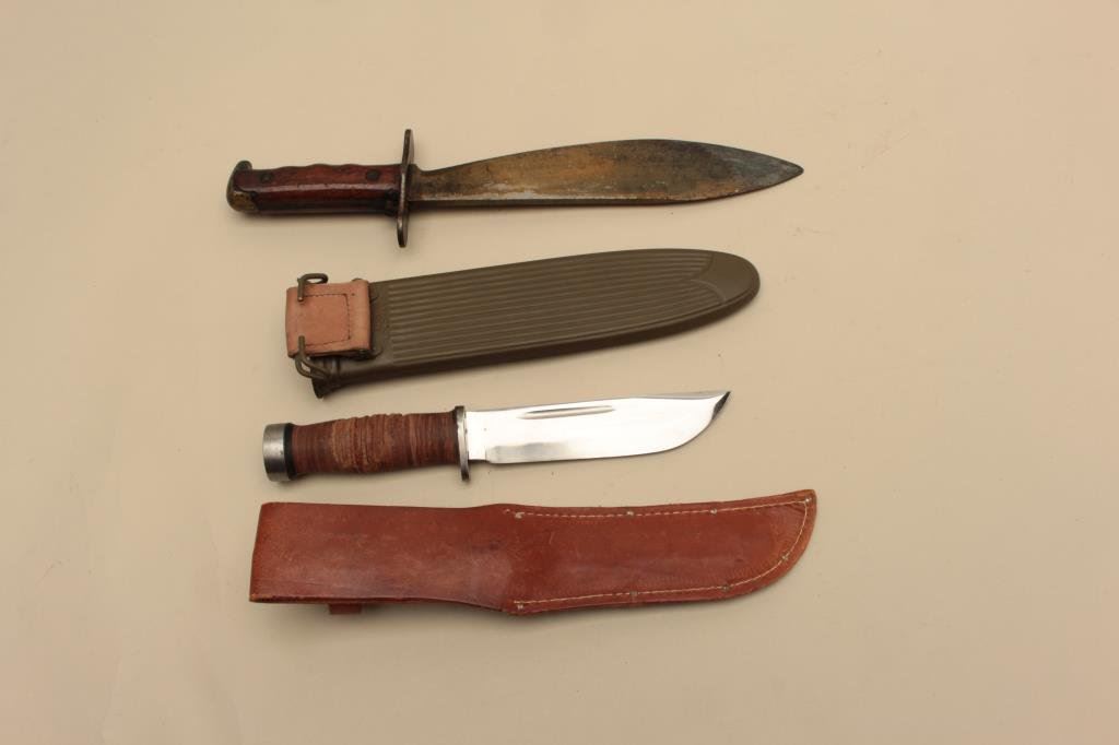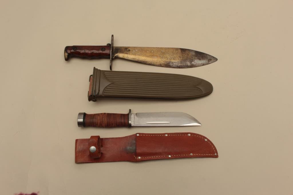 scabbard and a 1912-dated bolo knife with a non matching 1918-dated minty scabbard and hanger. Est.: $250-$500.