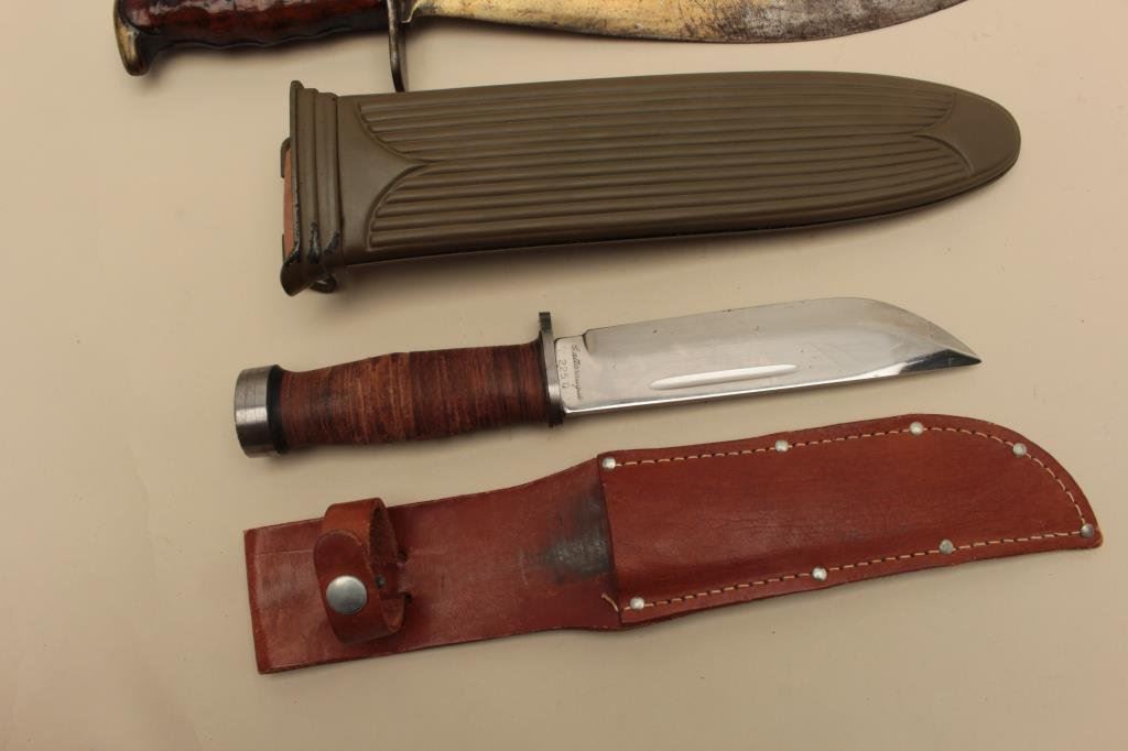 Lot 578 Militaria lot including a minty Cattaraugus fighting knife with unmarked