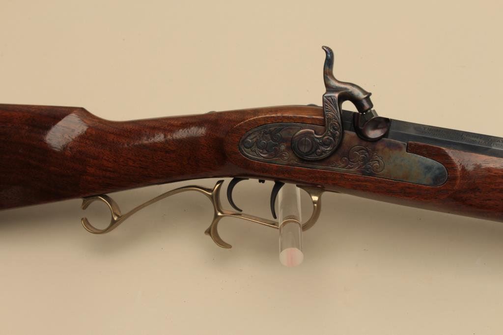 .50 caliber, blued and case hardened finish, wood half stock, double set triggers (working at time of description), brass mounts including patchbox, wood stock, S/NK315553, in overall excellent condition showing little use or handling. (Percussion). Est.: $350-$650.