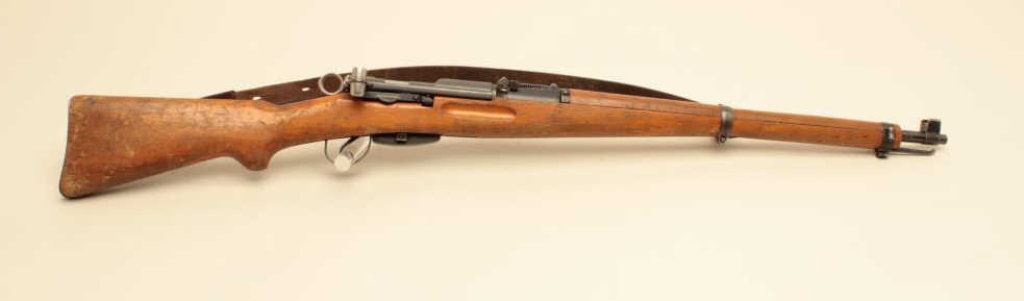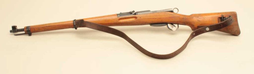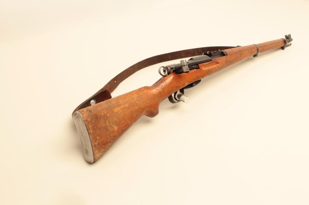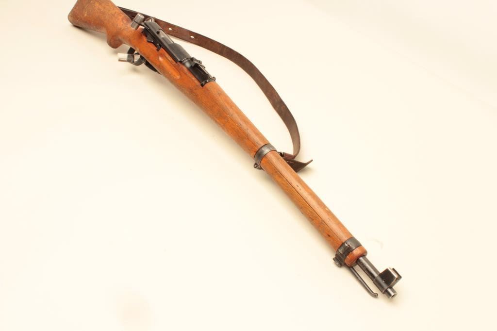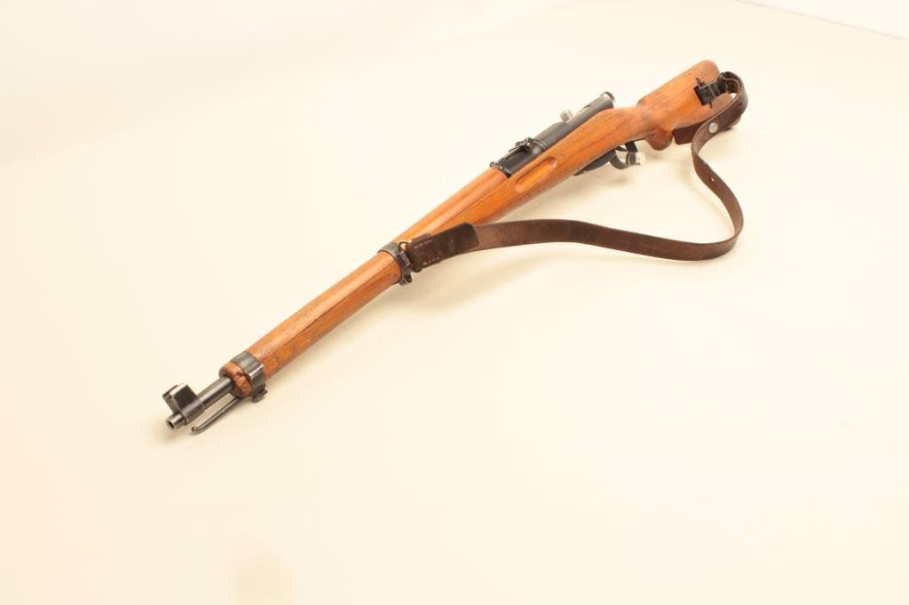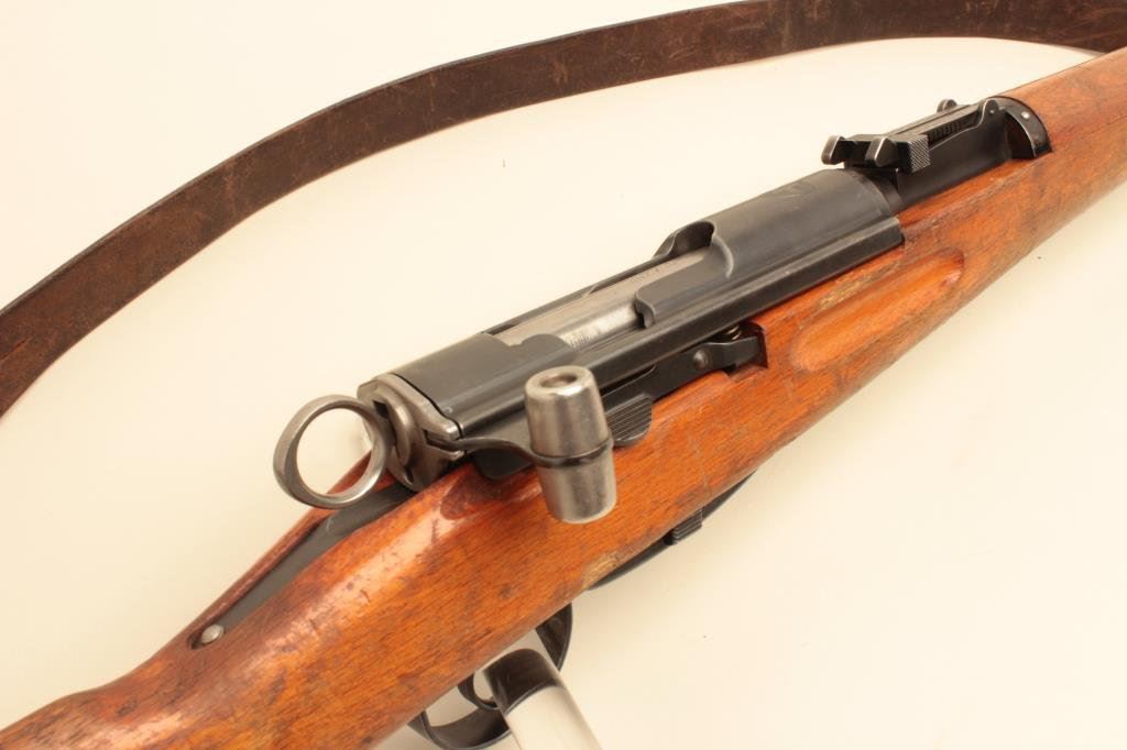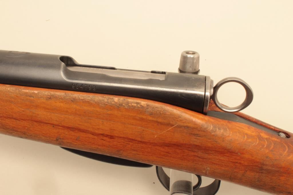 55mm caliber, military finish, wood stock, S/N 954793, in overall good to very good condition with a very good bore, crisp action and markings, considerable finish to metal surfaces remaining, leather sling present; wood stock shows wear, dings and mars from carry and storage. (Modern). Est.: $350-$700.