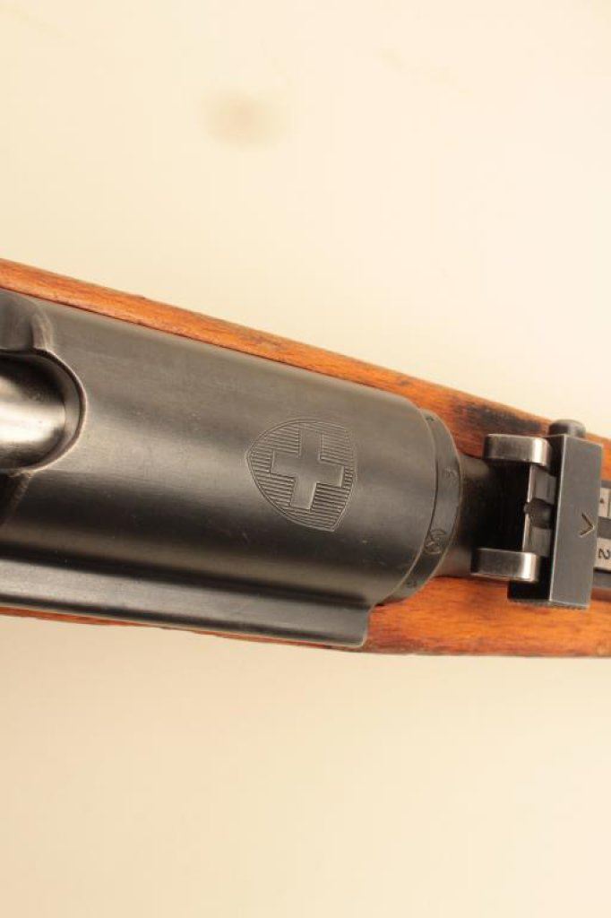 Lot 593 Swiss Schmidt Rubin straight pull bolt rifle, import-marked, 7.5 x