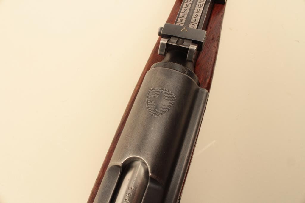 Lot 594 Swiss Schmidt Rubin straight pull bolt rifle, 7.5 x 55mm