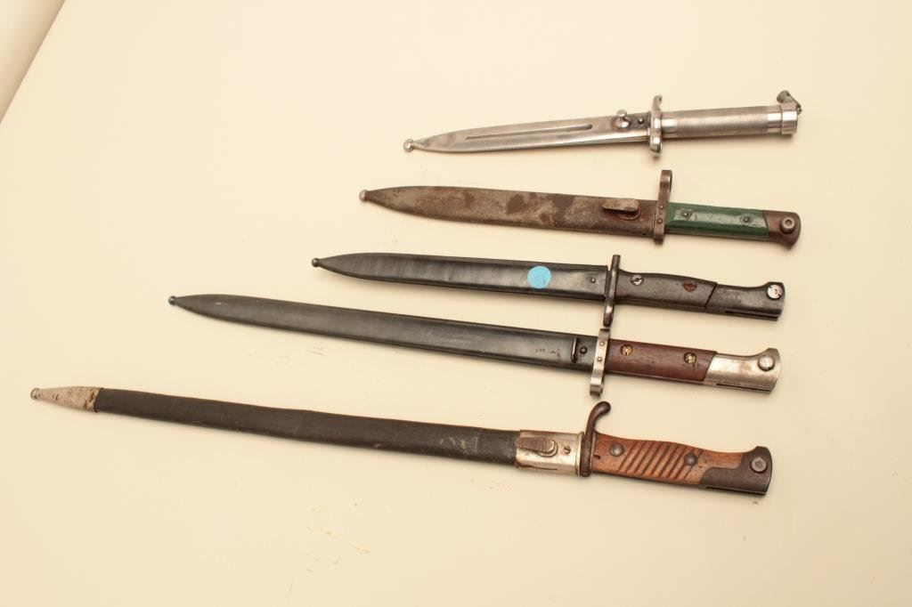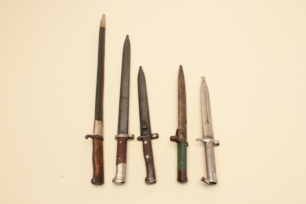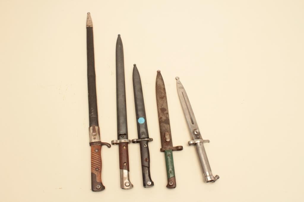 Lot 625 Lot of 5 various bayonets with sheaths including a German