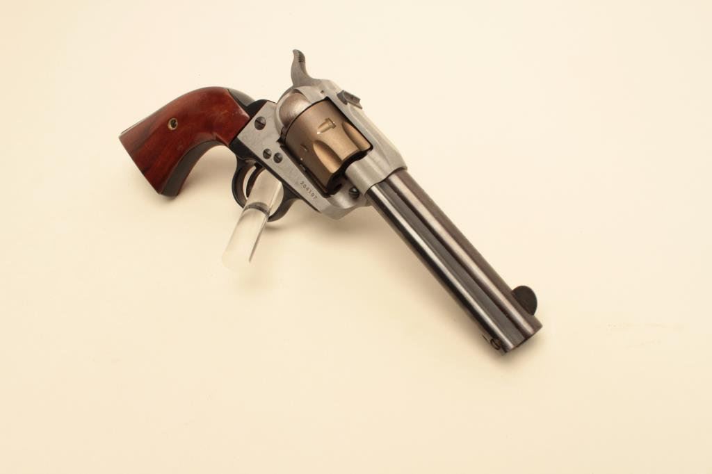 barrel, blued finish on barrel assembly and straps, wood grips, S/N 204107, in overall very good to fine condition with majority of original finish on barrel assembly , sharp markings, crisp action, very good + bore; near fine grips; a scarce model! (Modern/PPT). Est.: $100-$200.