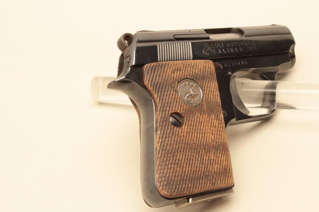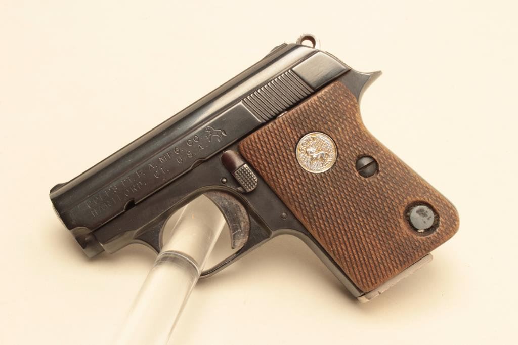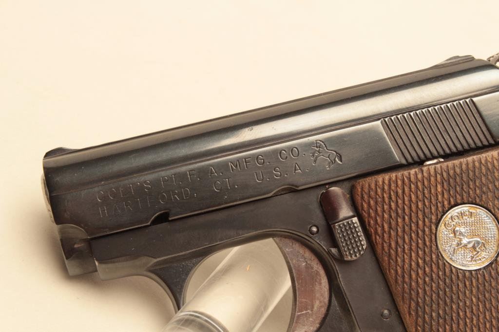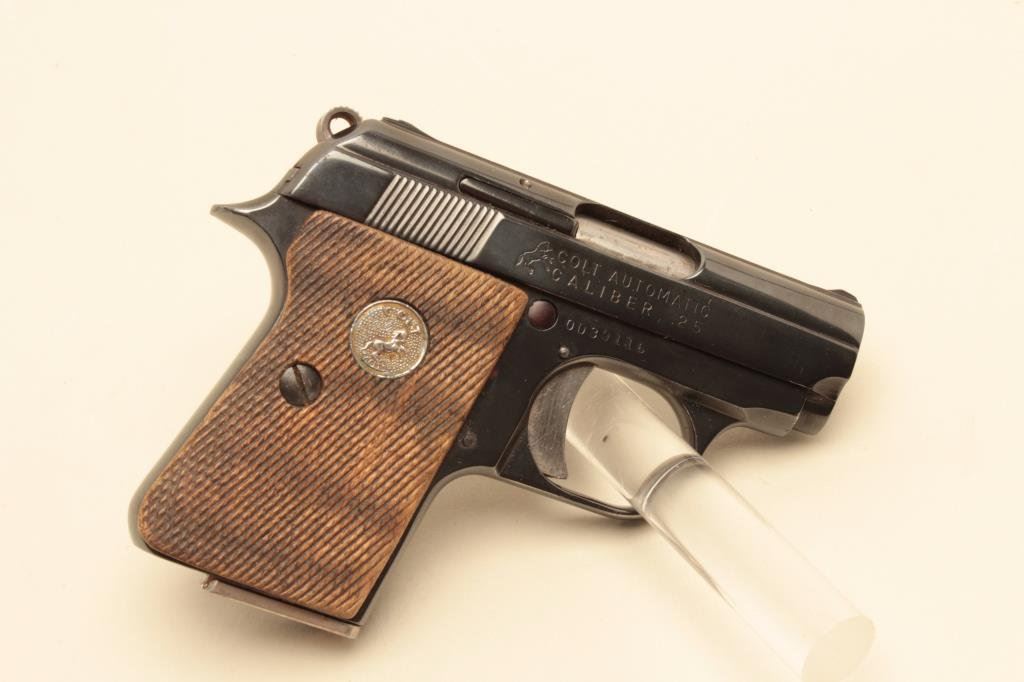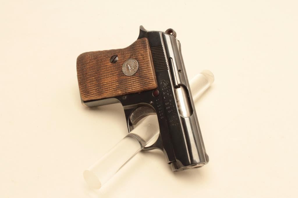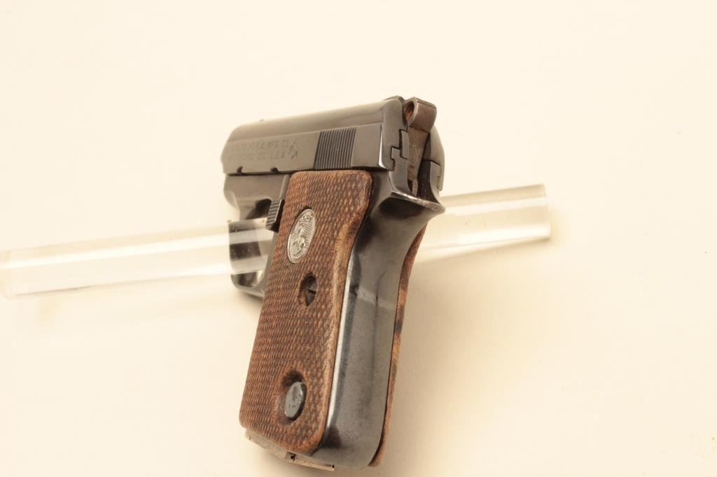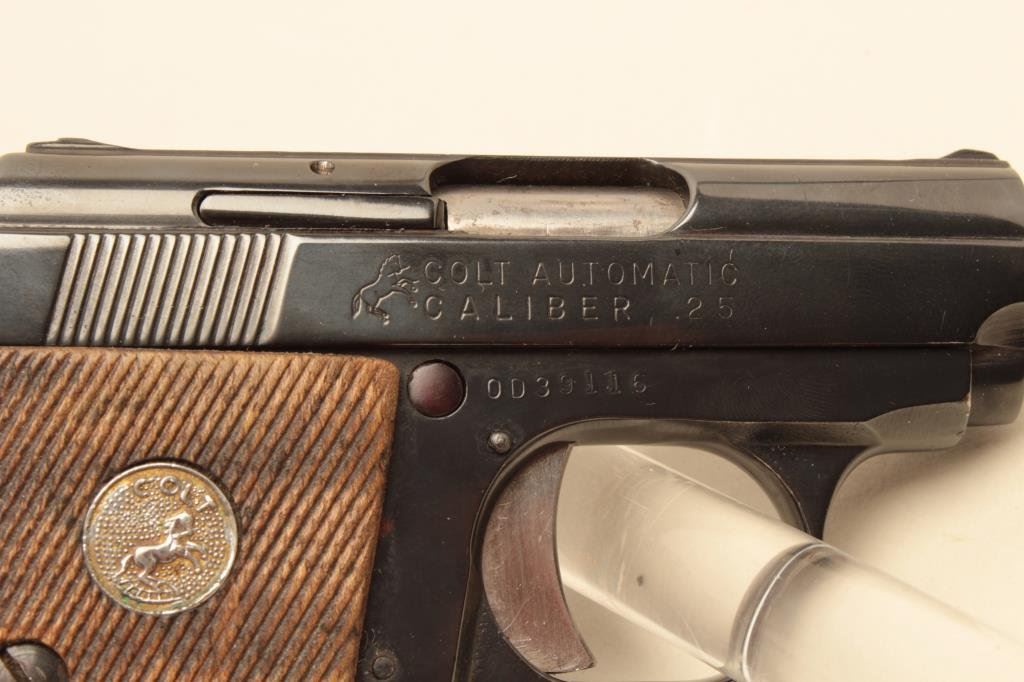 Lot 637 Colt .25 caliber, semi-automatic pistol, 2 barrel, blued finish, checkered