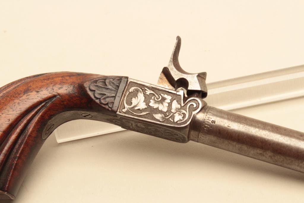 grip, screw-off barrel, no visible S/N, in overall very good condition with pleasing dark patina and very good grips. (Antique). Est.: $200-$400.
