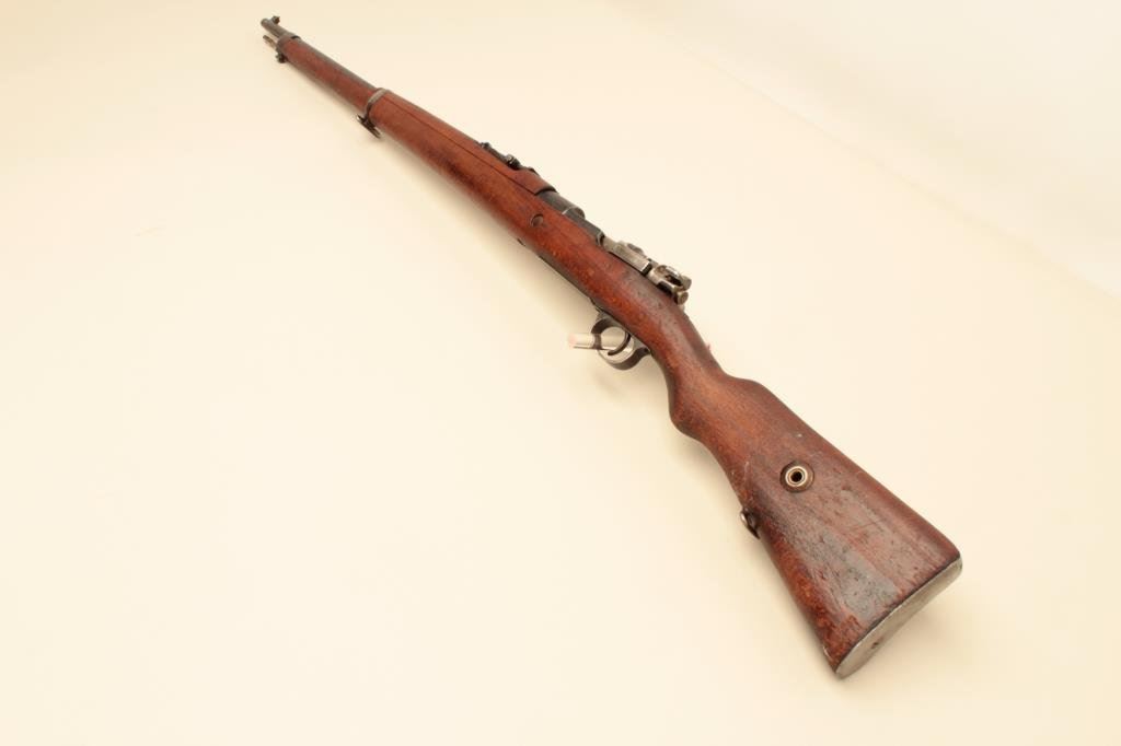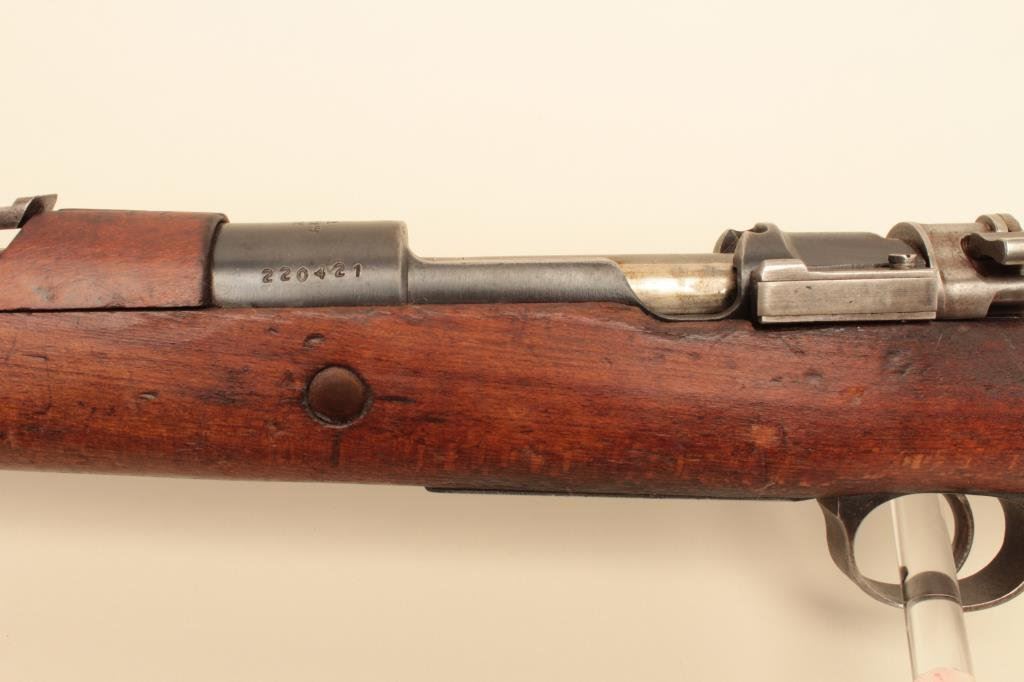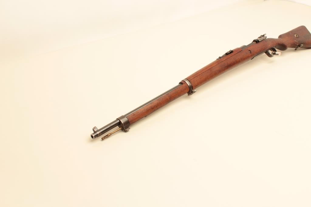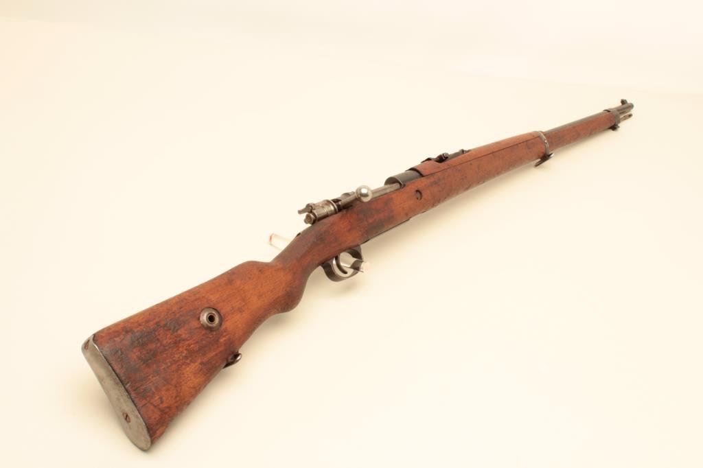 receiver, 8mm caliber, import-marked, military finish, wood stock, S/N 220421, in overall good condition with a good bore, action, markings and wood stock that shows old mars, dings and scratches from carry and storage. (C&R). Est.: $150-$300.