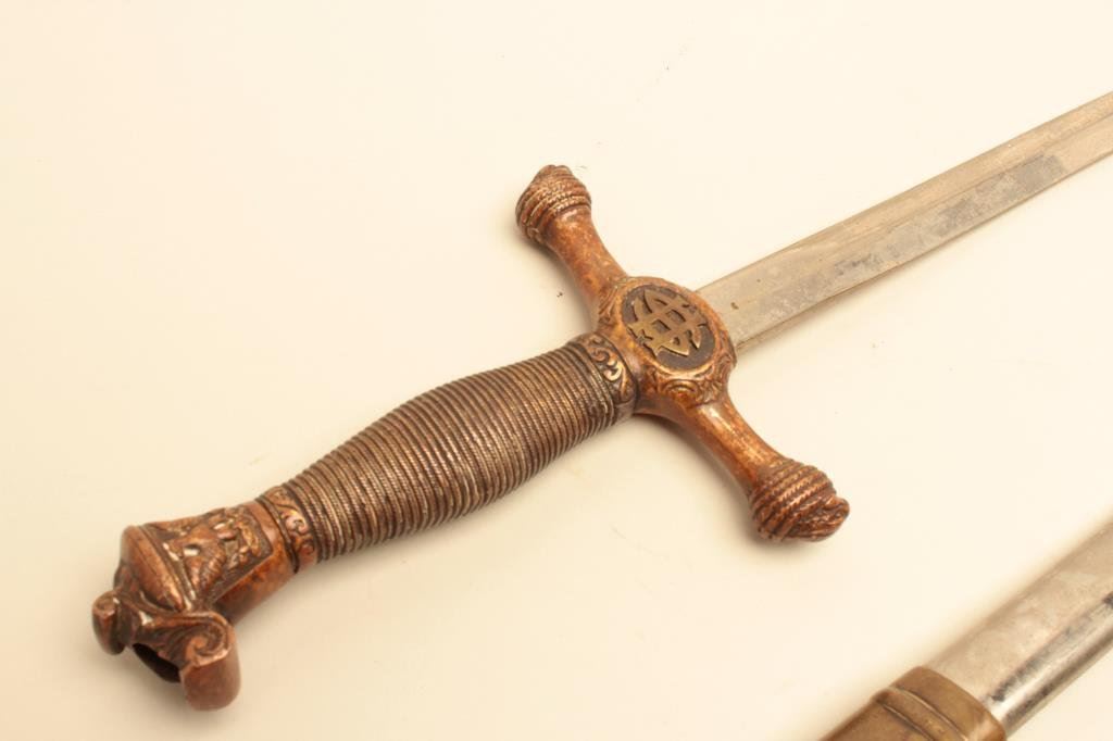 Lot 661 Cadet or Militia sword and scabbard; good + overall condition.